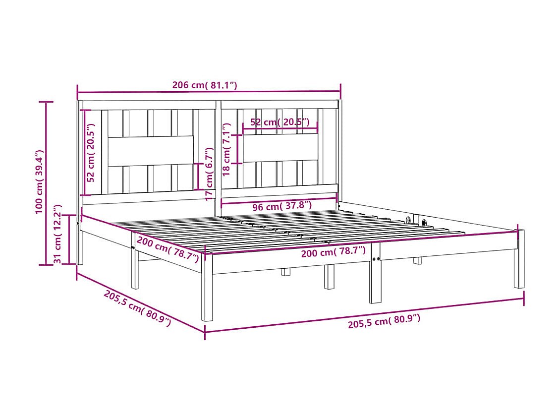 Bedframe zonder matras zwart massief hout 200x200 cm