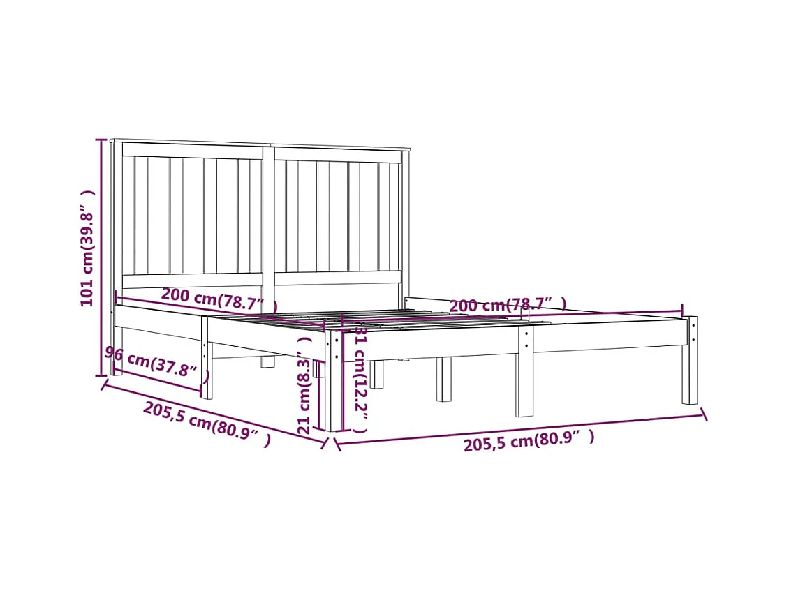 Bedframe zonder matras zwart 200x200 cm massief grenenhout