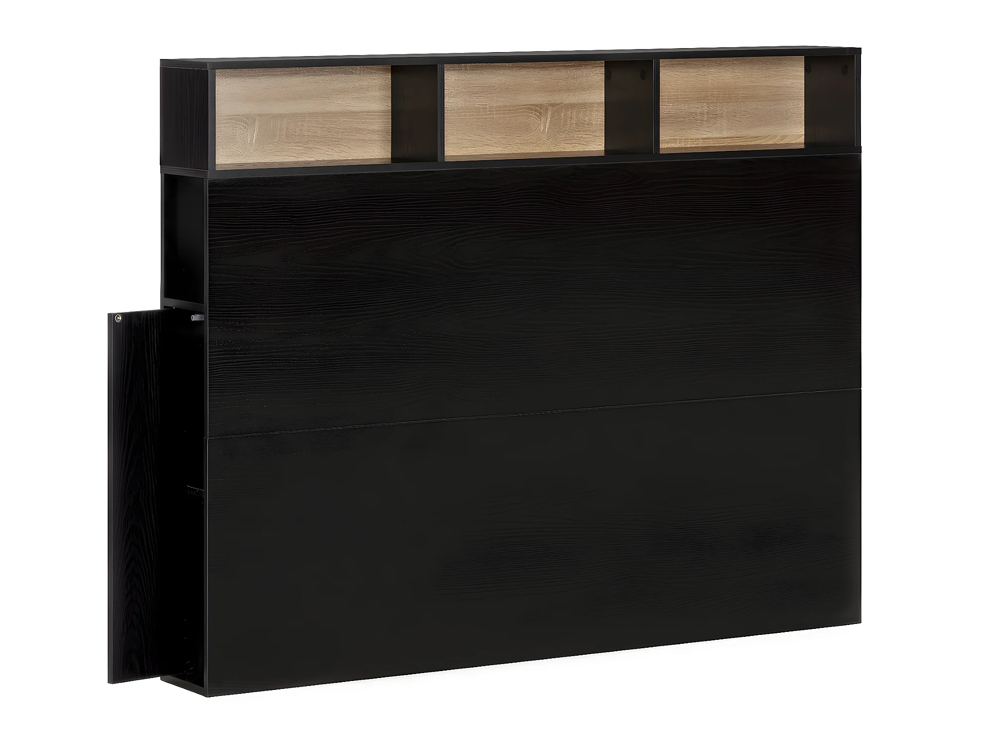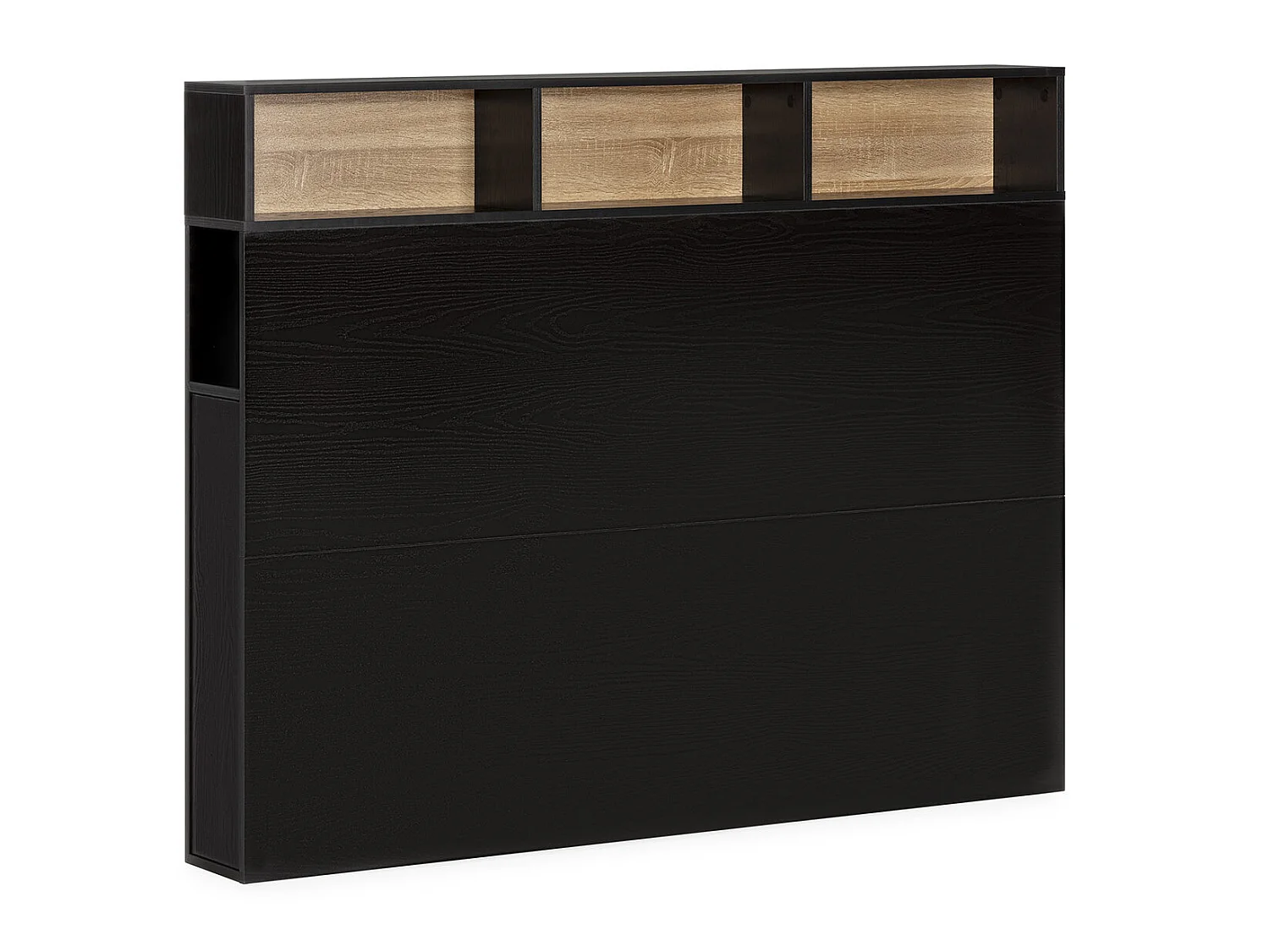 Bedhoofd Zeus 145 cm met opbergruimte Zwart, 2 Deuren 9 Vakken