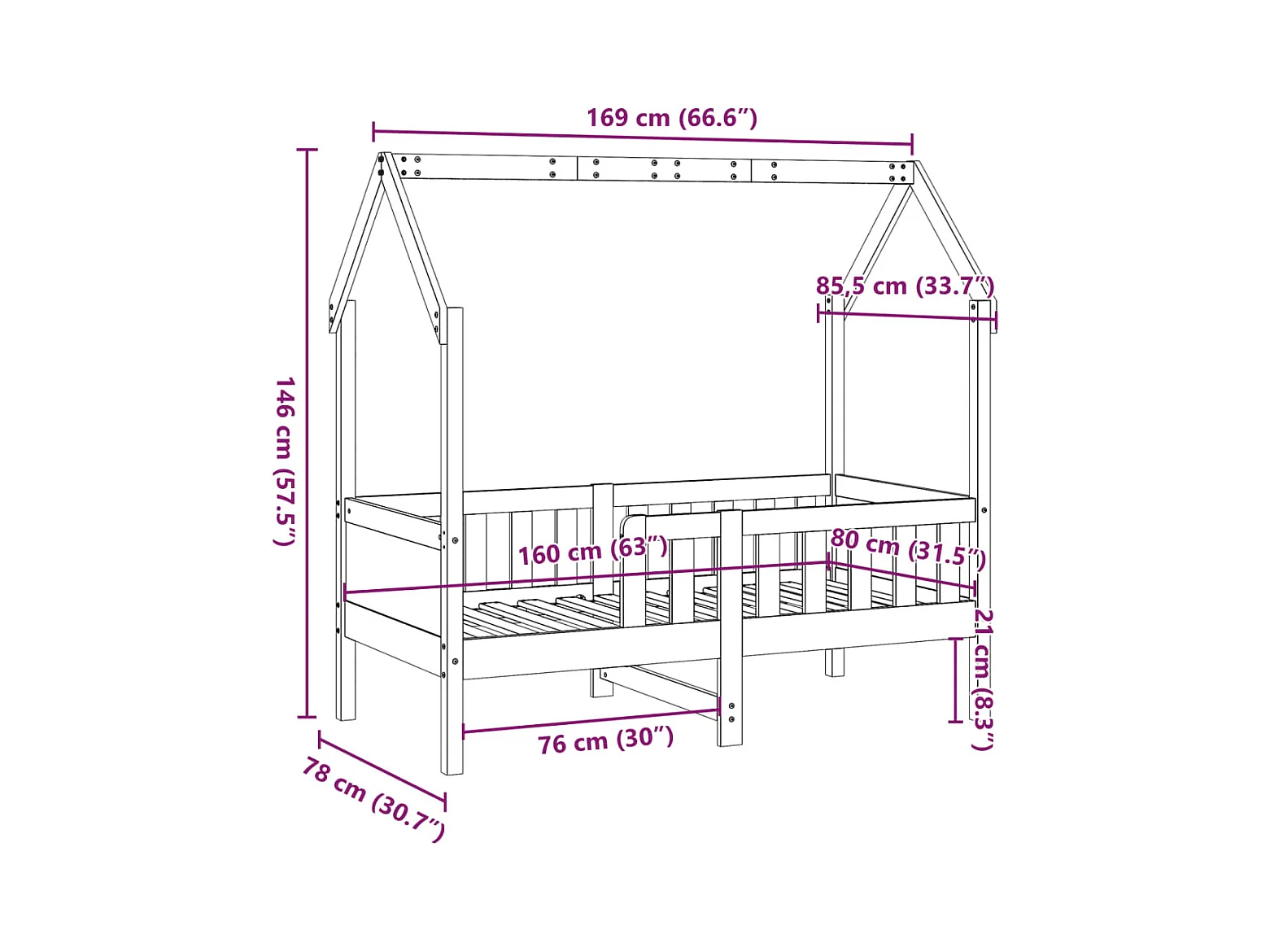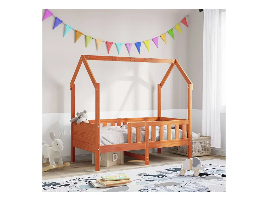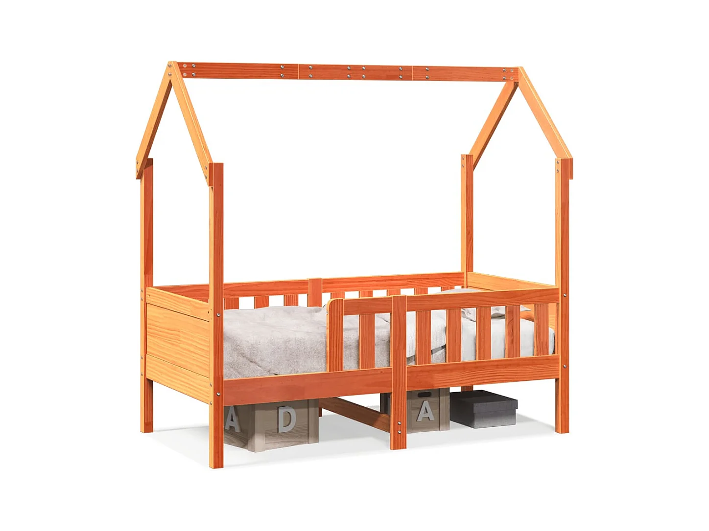 Kinderbed met bedhuis 80x160 cm massief grenenhout wasbruin