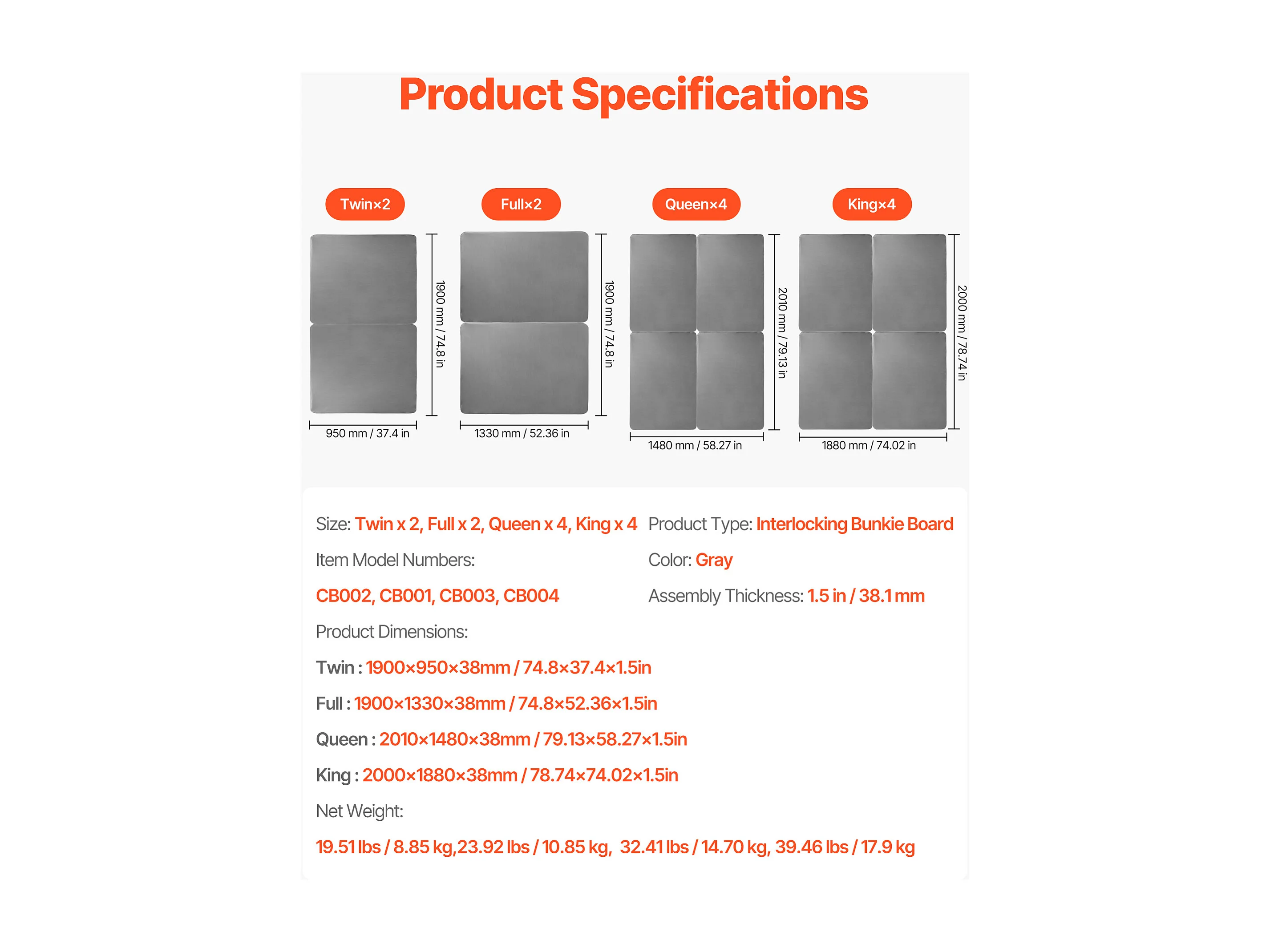 Bedplank SucceBuy Bunkie Board voor Dubbele Bedden ,190 x 133 x 3.8 cm, met Bestendig Oxford Stof 200D, Houten basis , 2-delig Ontwerp in Grijs