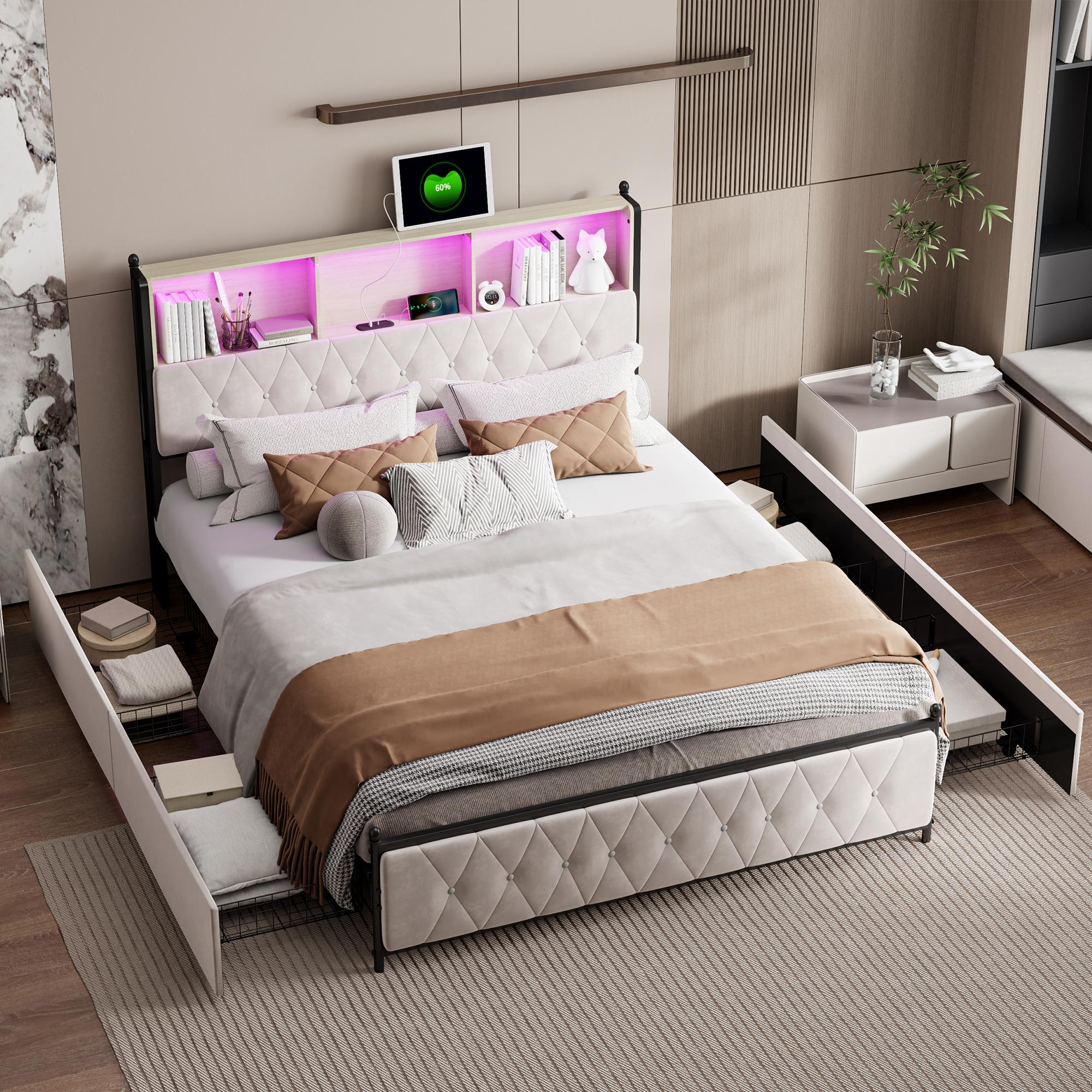Geoptimaliseerde opbergruimte: drie open nissen in het hoofdeinde voor uw boeken, wekker of dagelijkse benodigdheden, evenals vier ruime lades onder het bed (twee aan elke kant) op wieltjes voor beddengoed, kleding of accessoires.