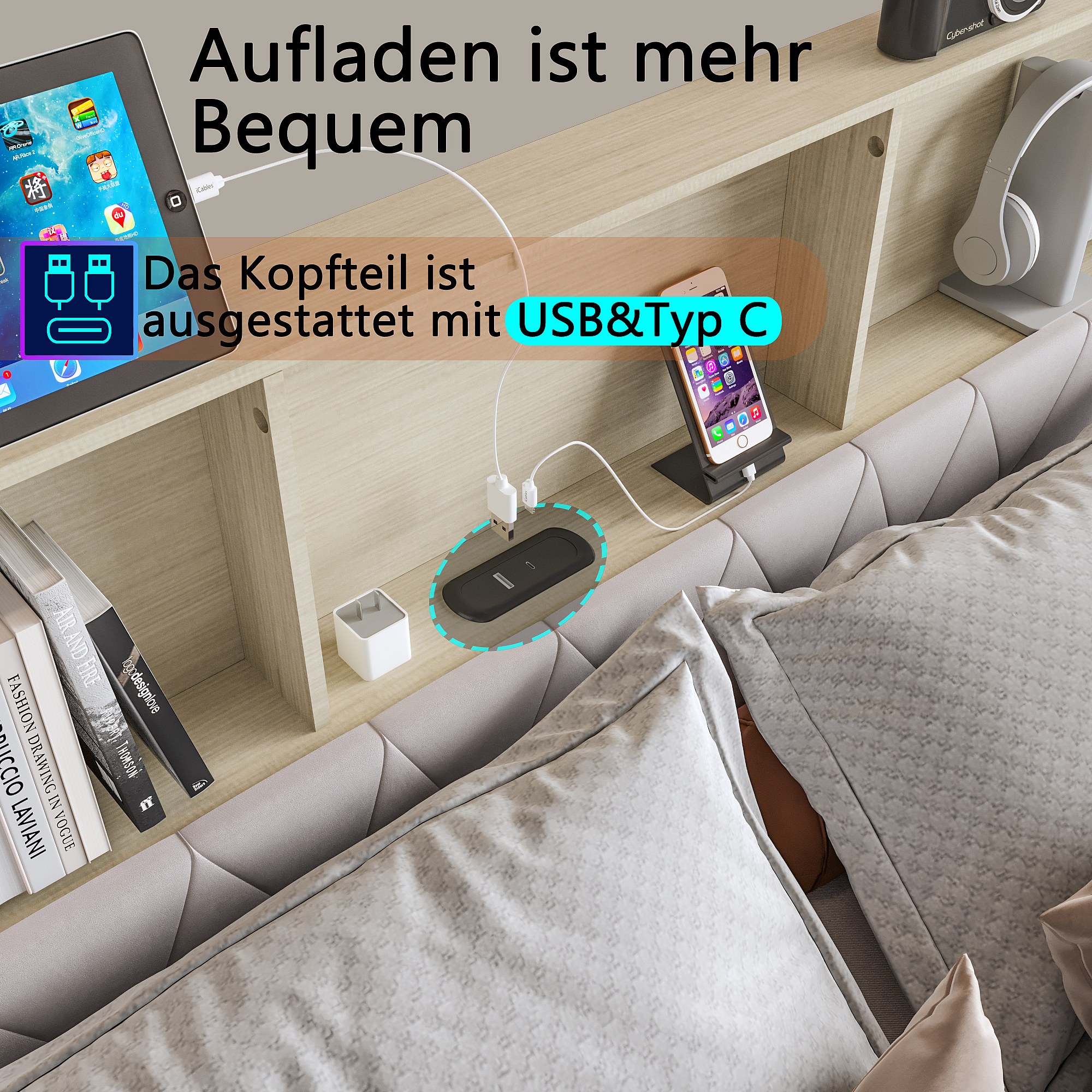 Geïntegreerde oplaadpoorten: 2 aansluitingen (USB en Type-C) direct op het hoofdeinde, handig om je telefoon, tablet of accessoires op te laden.