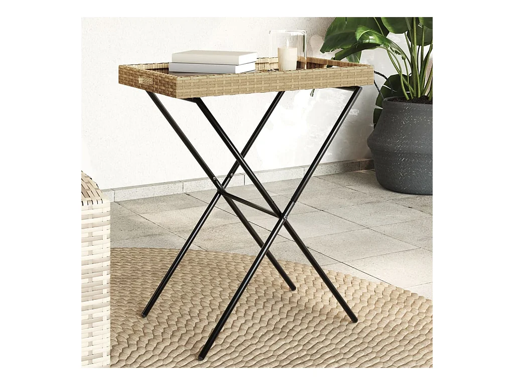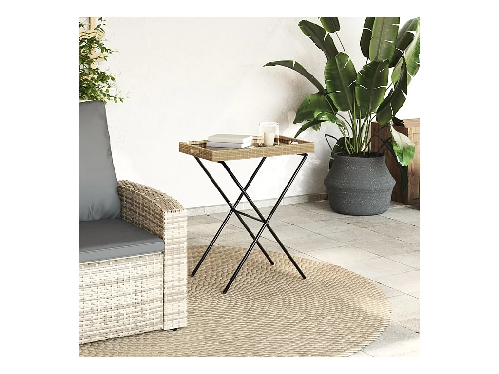 Beige opvouwbare tuintafel 90 x 51 x 75 cm polyrotan