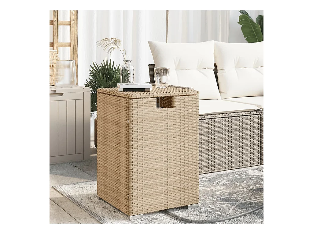 Beige tuintafel 45x45x37 cm gevlochten hars en acaciahout