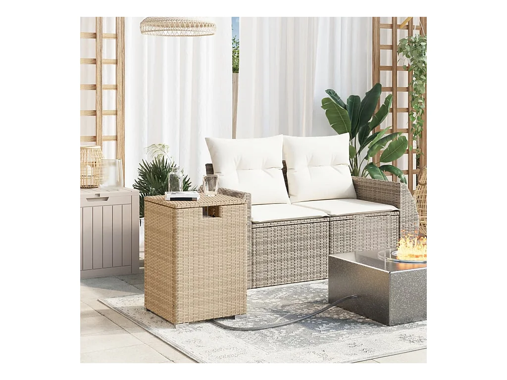 Beige tuintafel 40x40x42 cm gevlochten hars en acaciahout