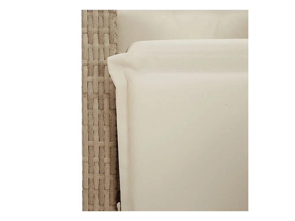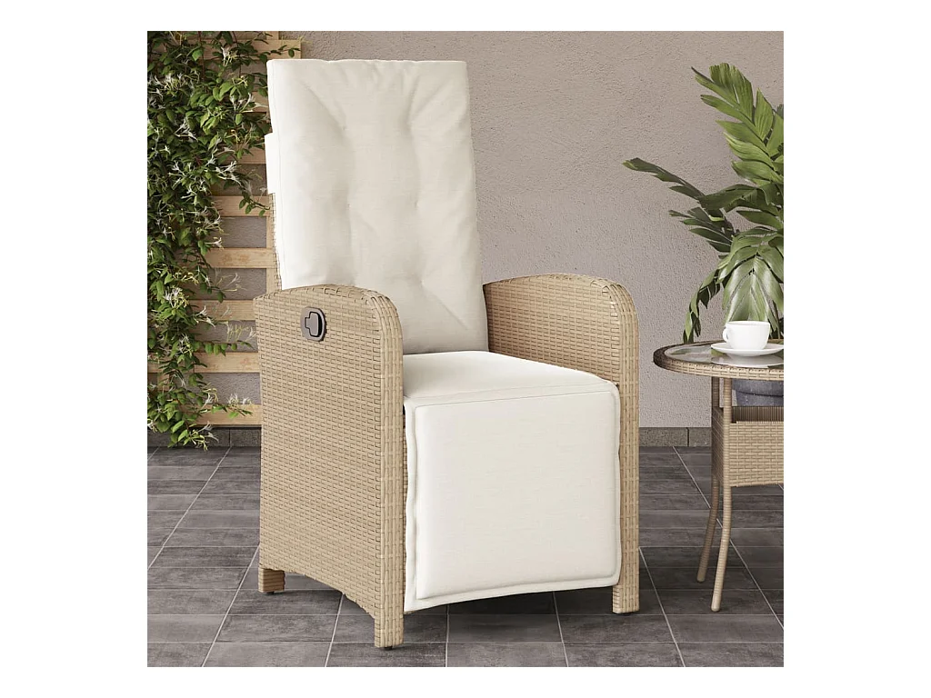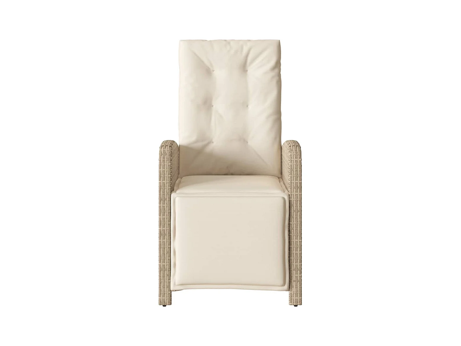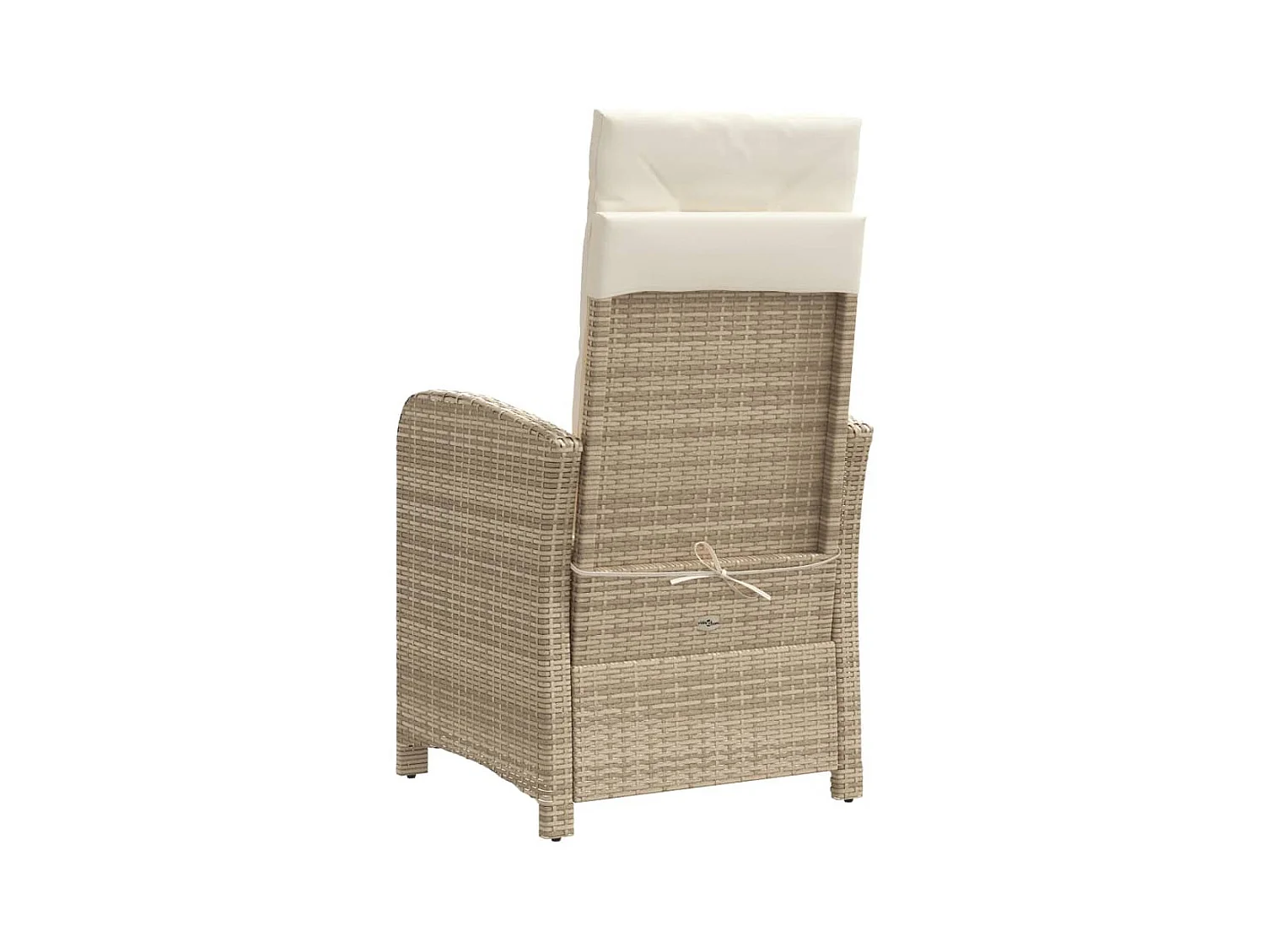 Beige relaxstoel voor in de tuin met voetenbankje van gevlochten kunsthars