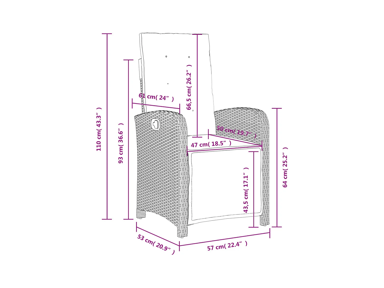 Set van 2 verstelbare tuinstoelen met kussens van gevlochten hars