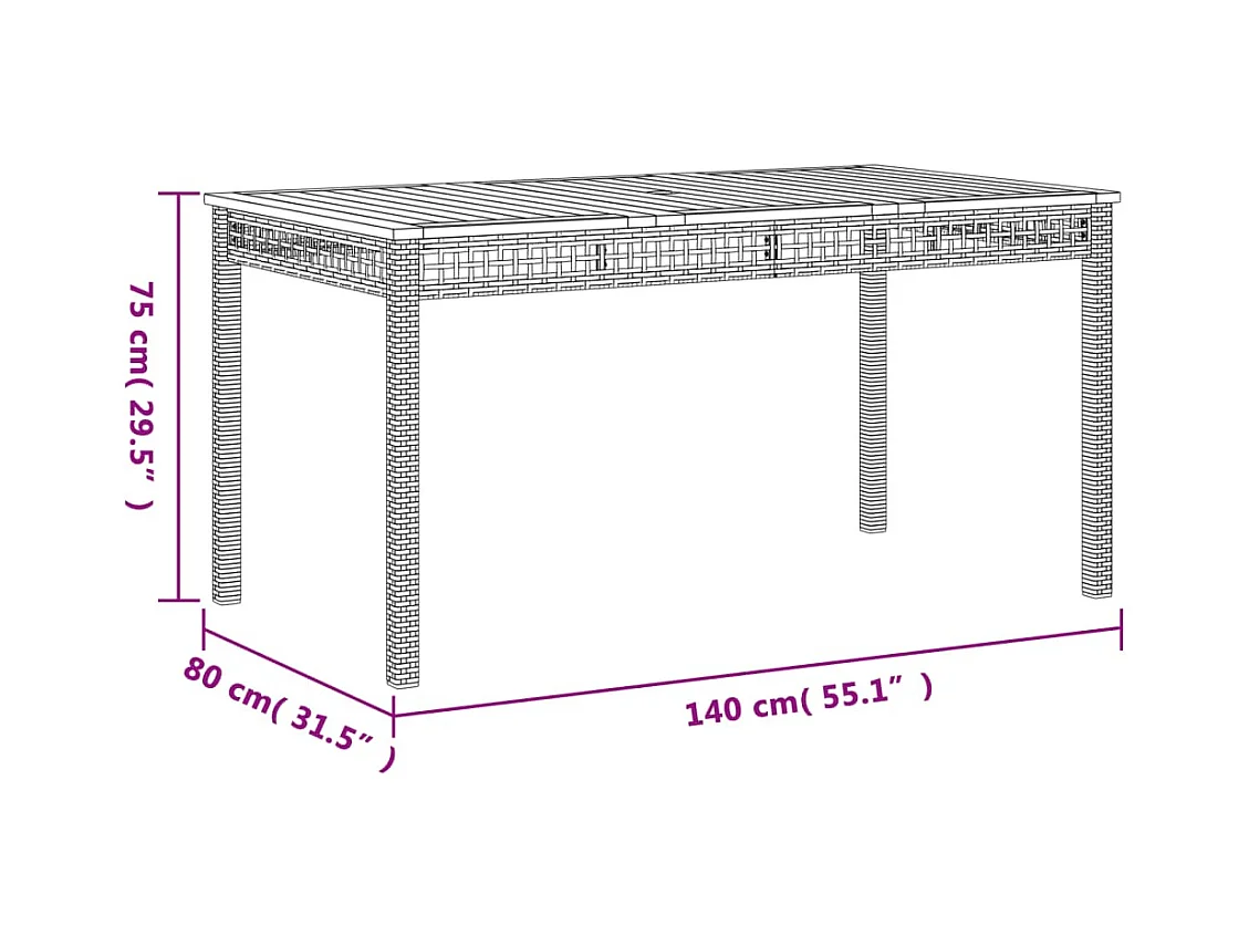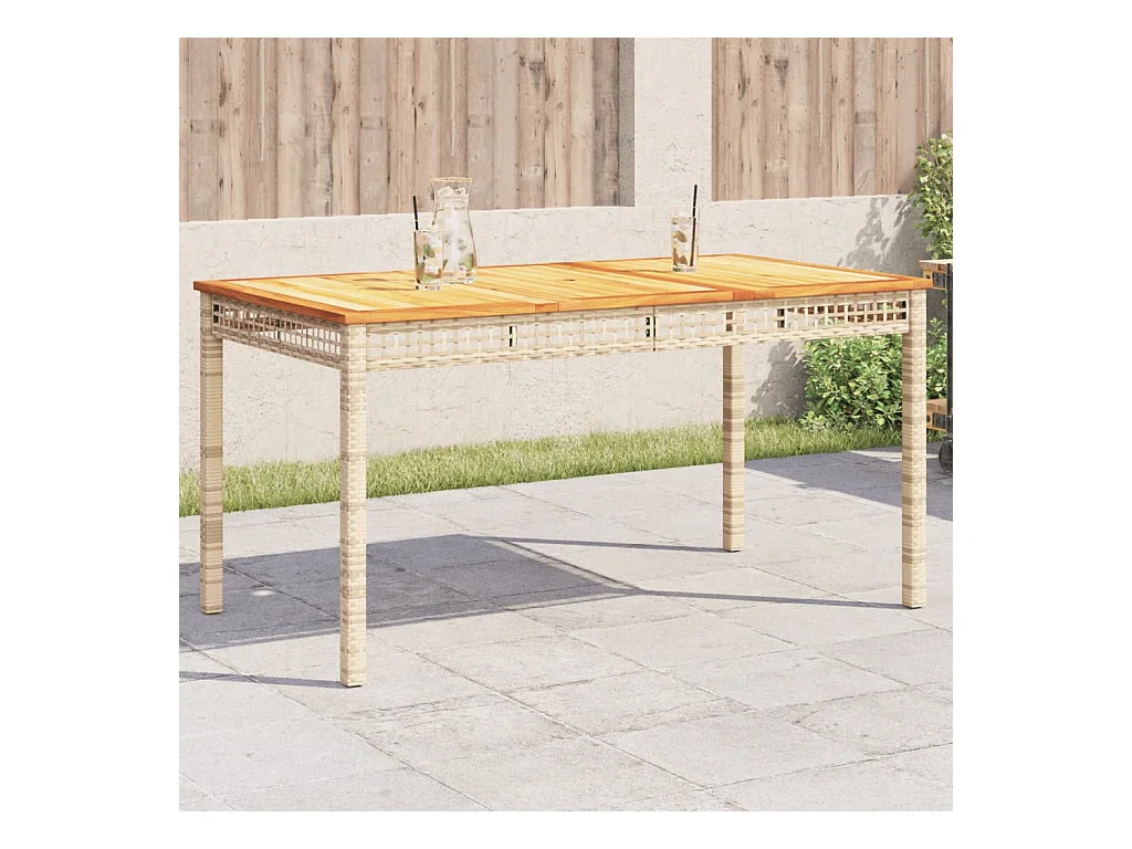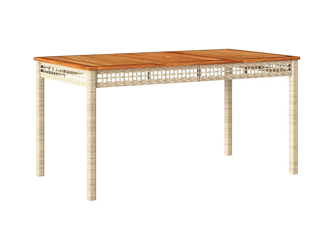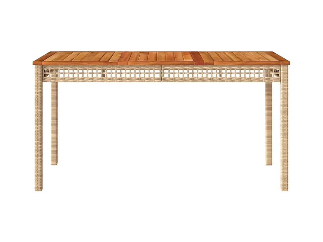 Beige tuintafel 140x80x75 cm gevlochten hars en acacia