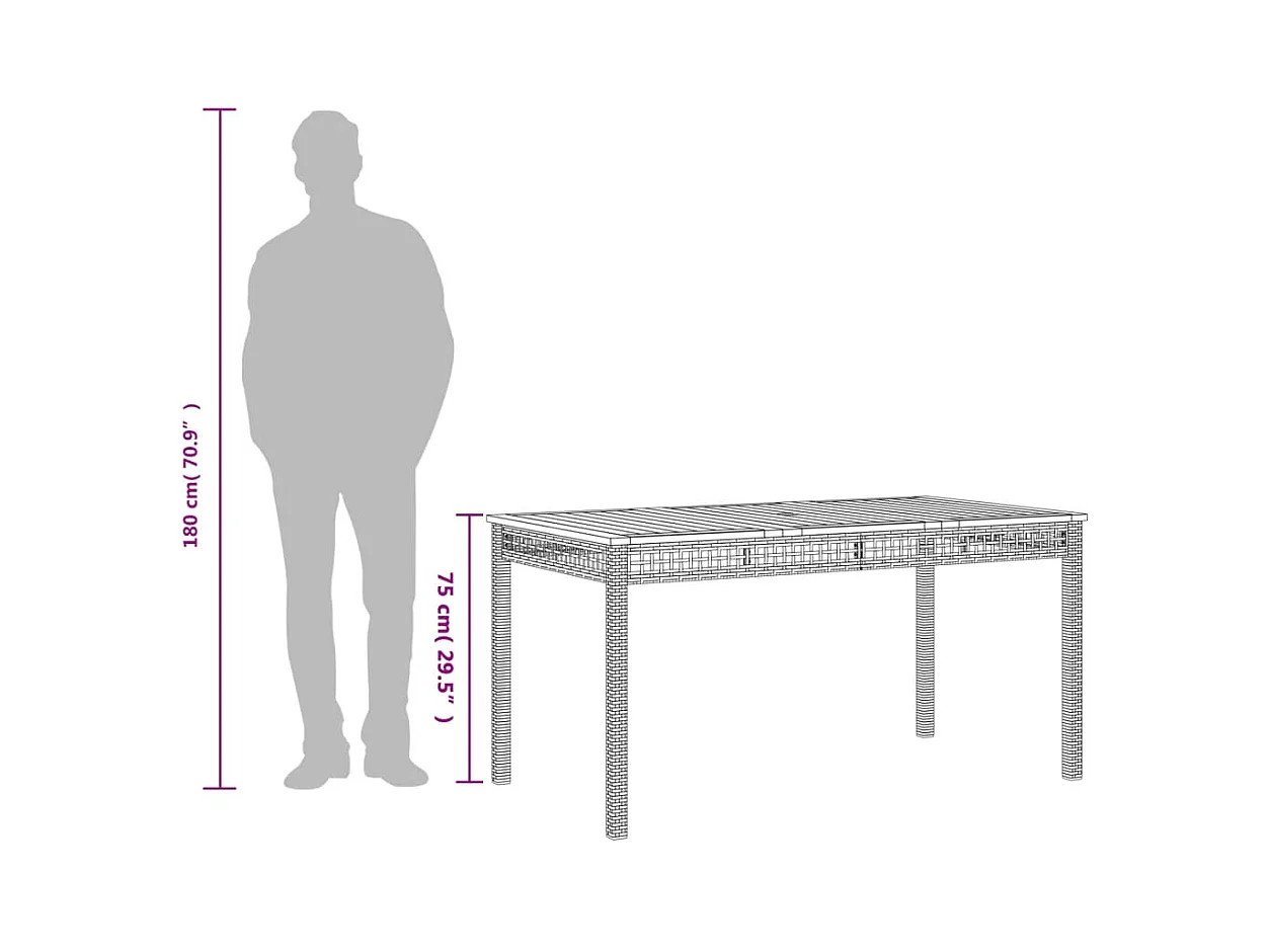 Beige tuintafel 180x90x75 cm gevlochten hars en acacia