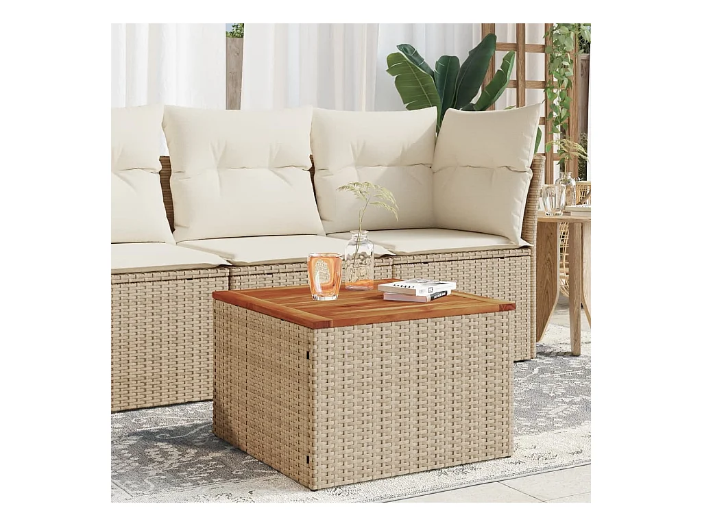 Beige tuintafel 55x55x36 cm gevlochten hars en acaciahout
