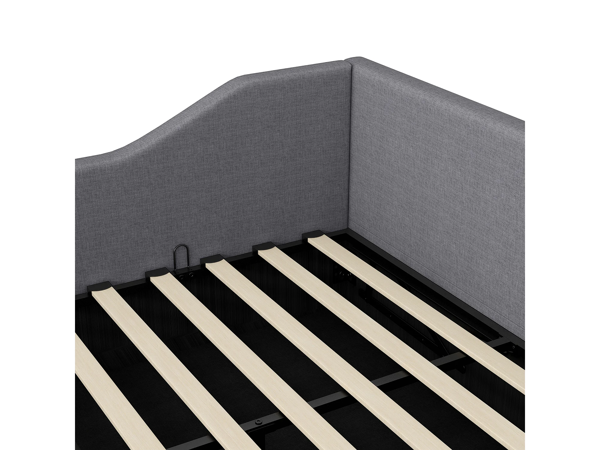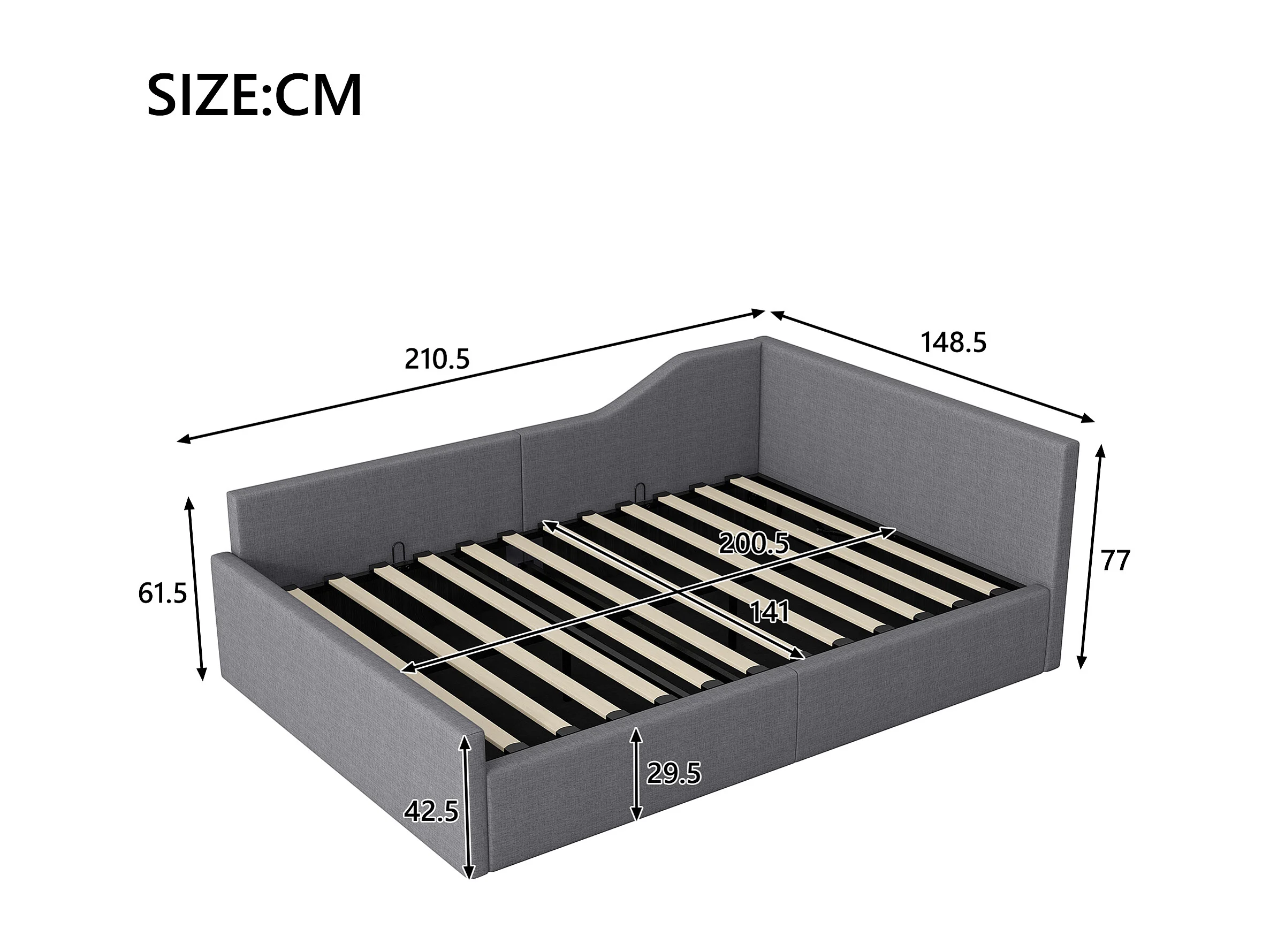 Bekleed Bed 140x200cm – Dagtbed met Opbergruimte Onder en Lattenbodem – Gestoffeerd Hoofdeinde, MDF/Multiplex Frame – Grijs – Zonder matras