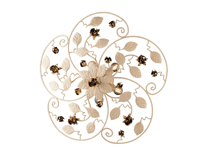Bella - Plafondlamp in ivoor gebeitst gelakt ijzer 5 lichts H.22 - Ø65 - BL196-PL5-AV