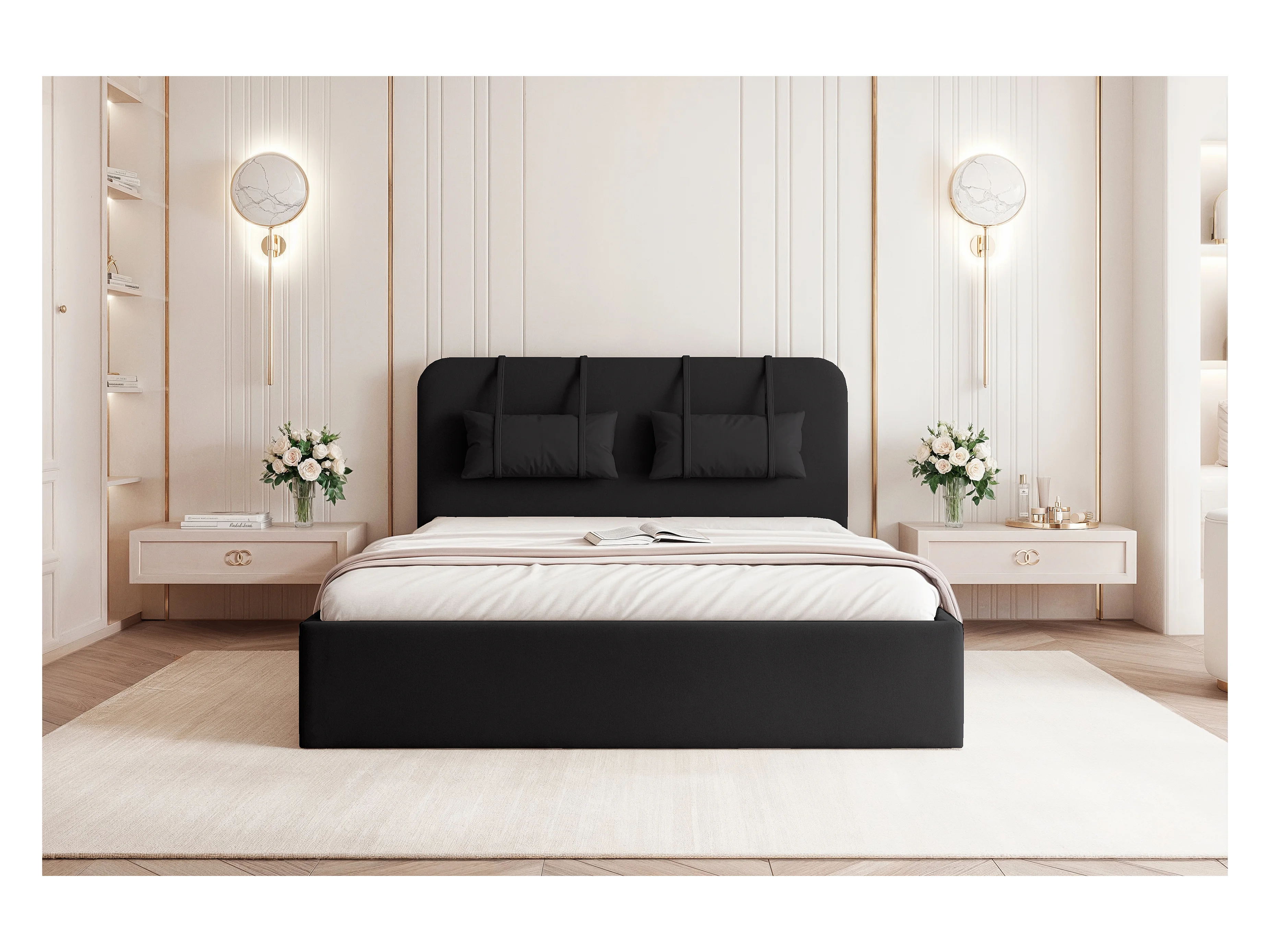 BESILIO Bed met opbergruimte van plaatmateriaal 140x200 Monti – slank bed met afneembare sierkussens, lattenbodem en opbergruimte voor beddengoed – Zwart