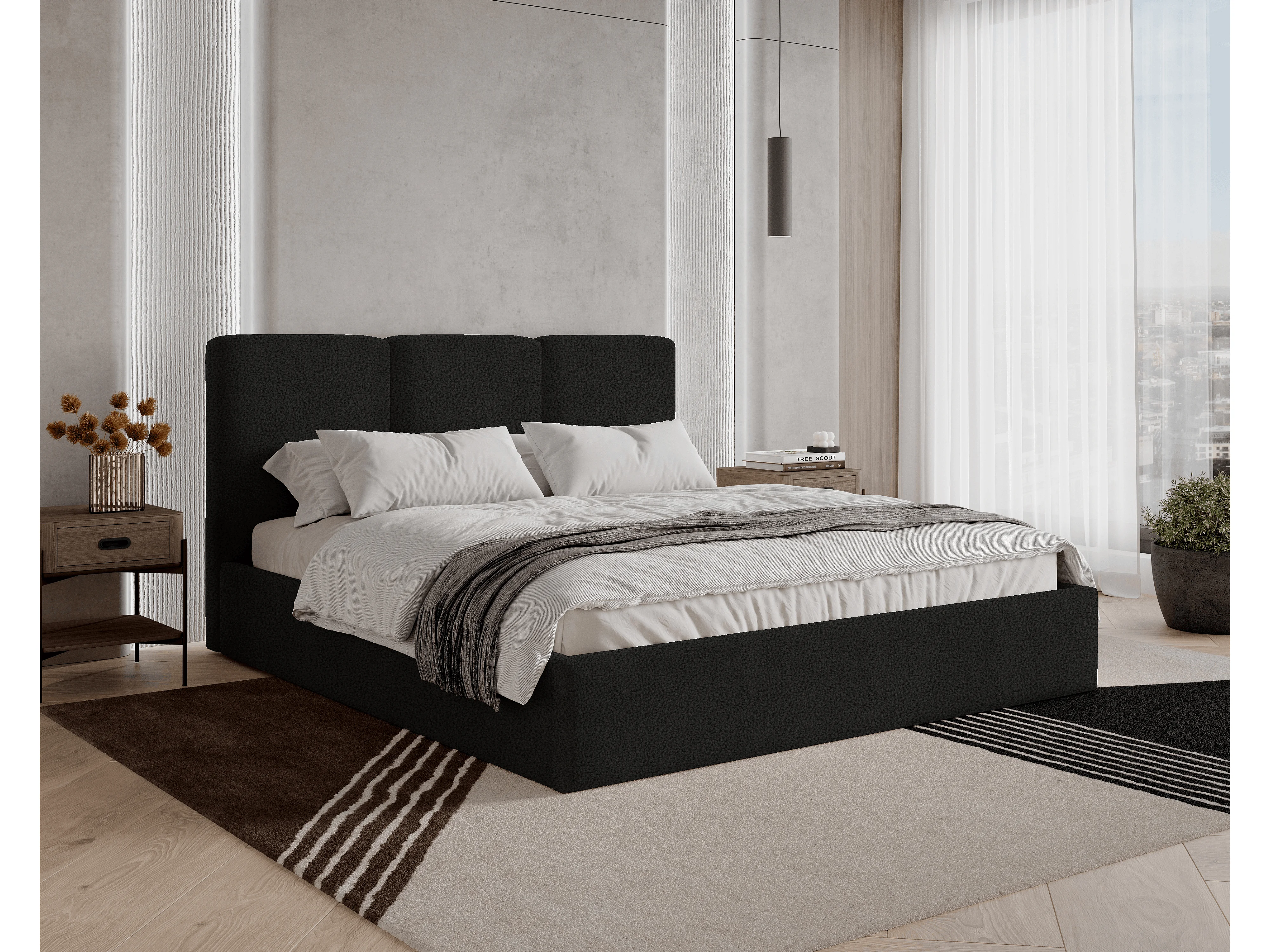 BESILIO Gestoffeerd bed 180x200 Mira bouclé – bed met opbergruimte en houten lattenbodem, modern opbergbed slaapkamer, bouclé stof – Zwart