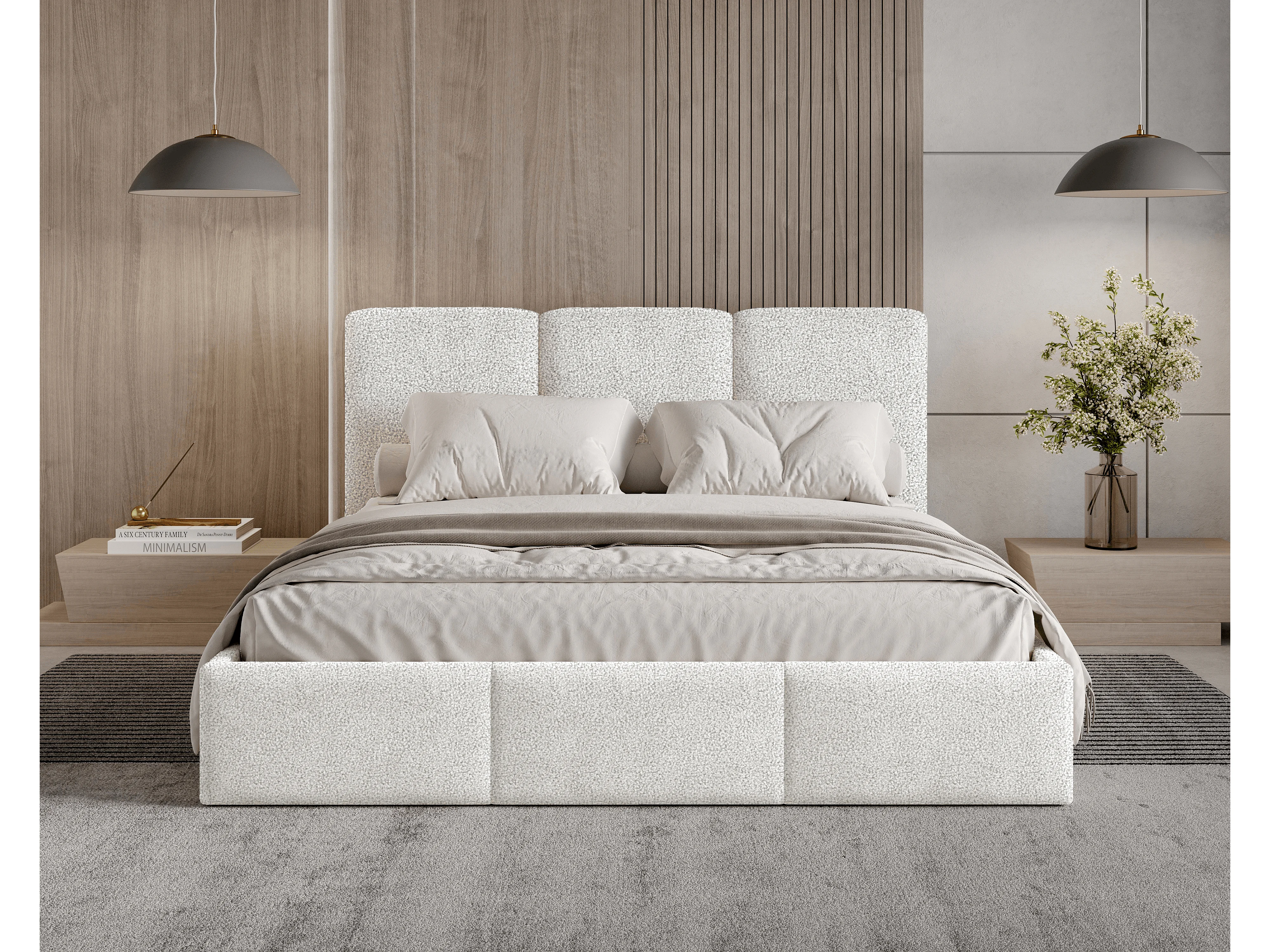 Gestoffeerd bed 160x200 Elora bouclé – bed met opbergruimte en lattenbodem, modern opbergbed, slaapkamerbed, trendy bouclé stof – Wit