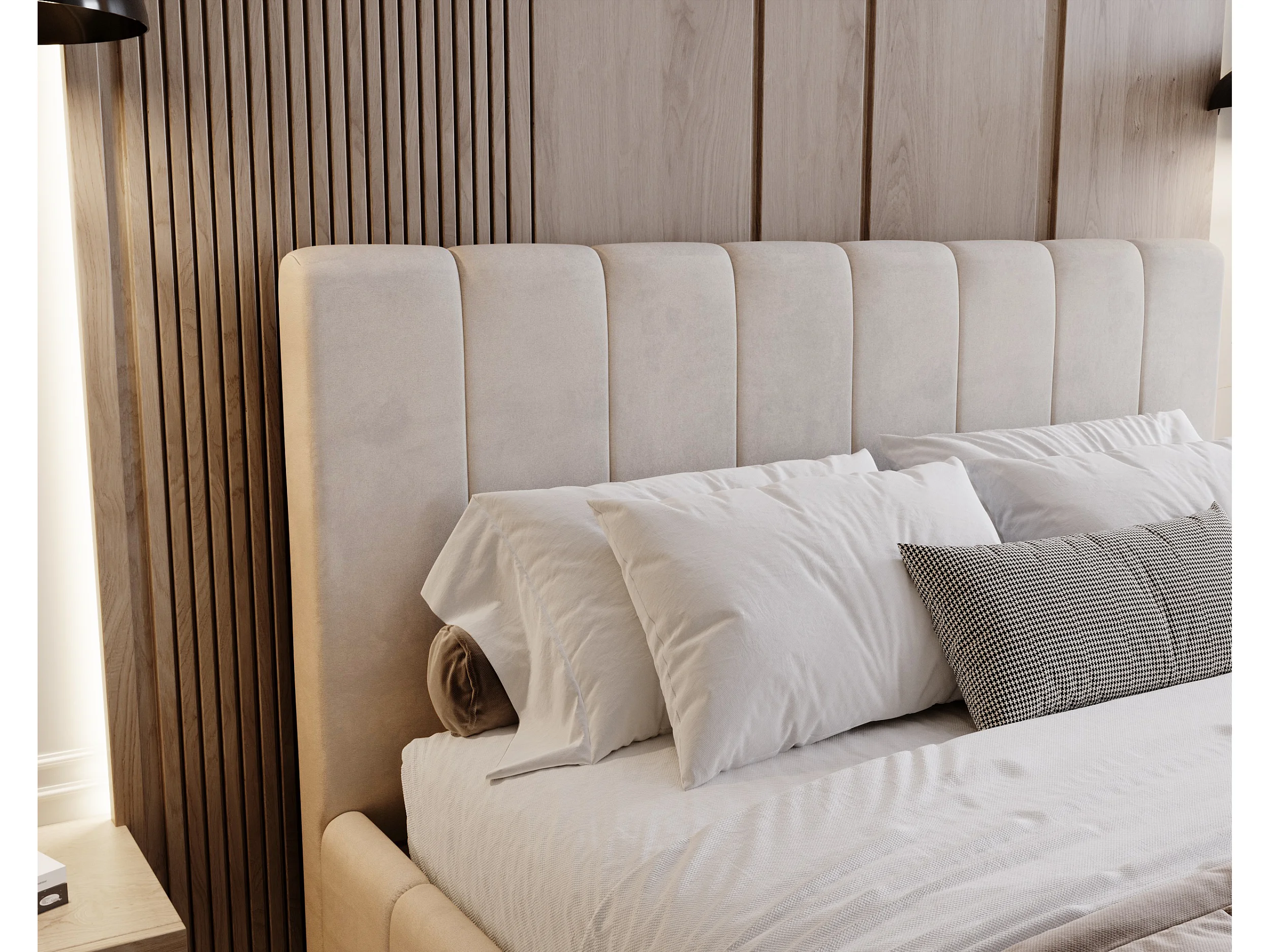 BESILIO Gestoffeerd bed Slim 120x200 Lexy – metalen frame, opbergruimte voor beddengoed, slank bed, fluwelen stof – Beige