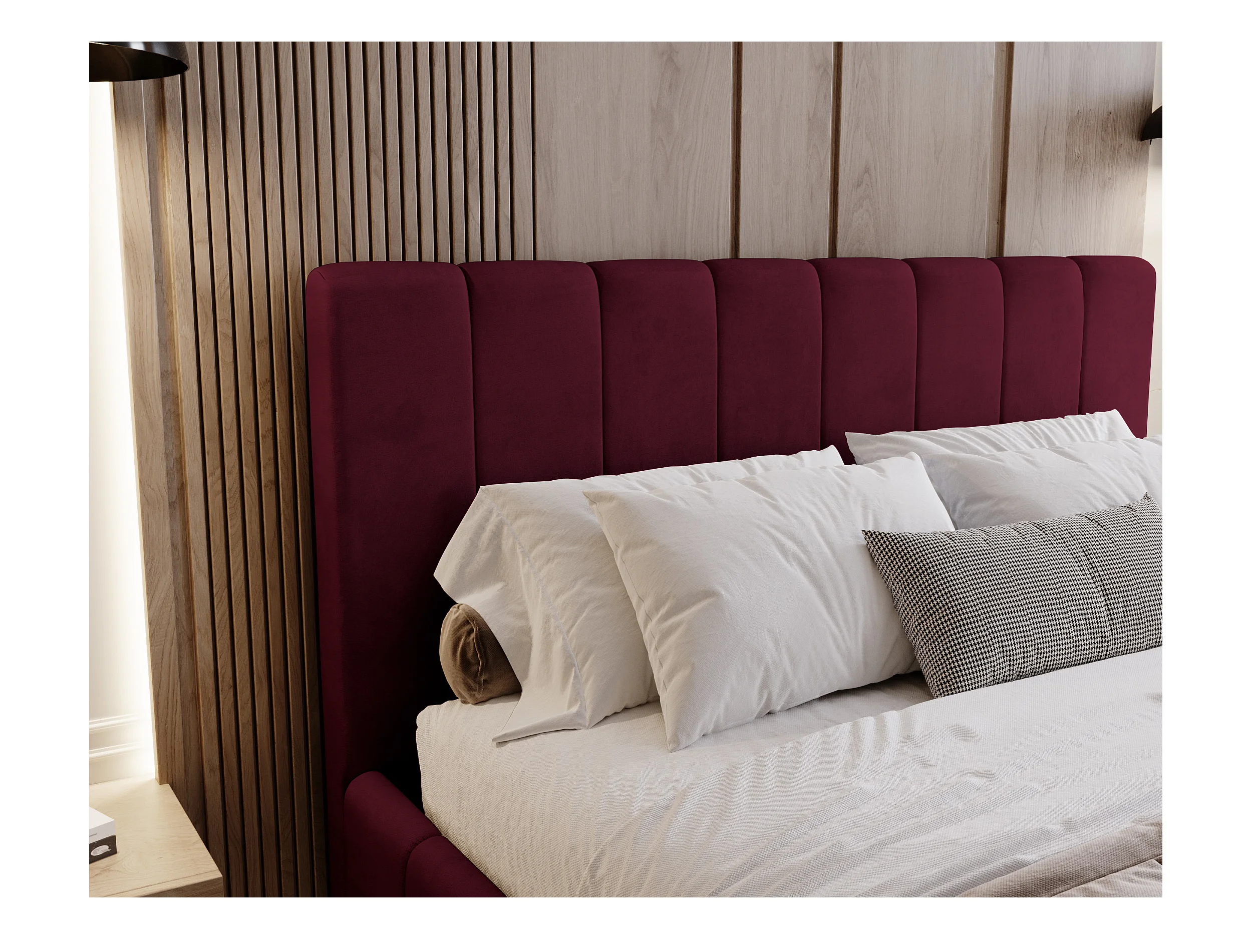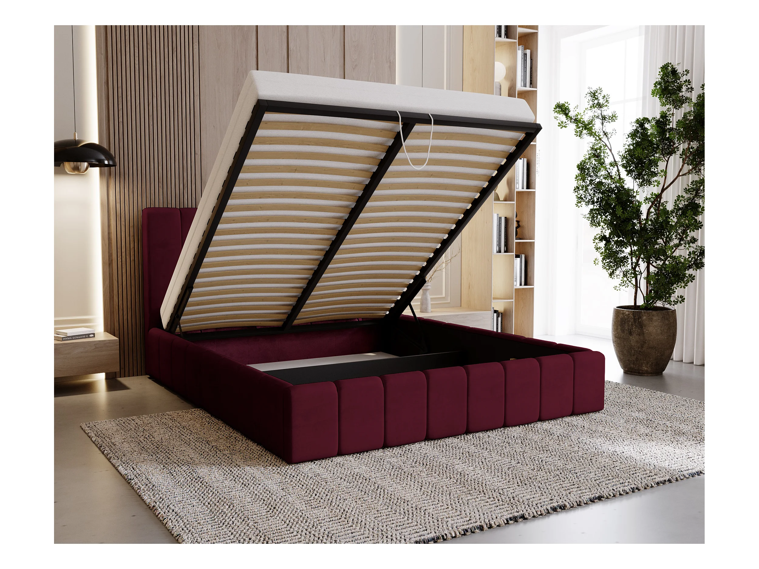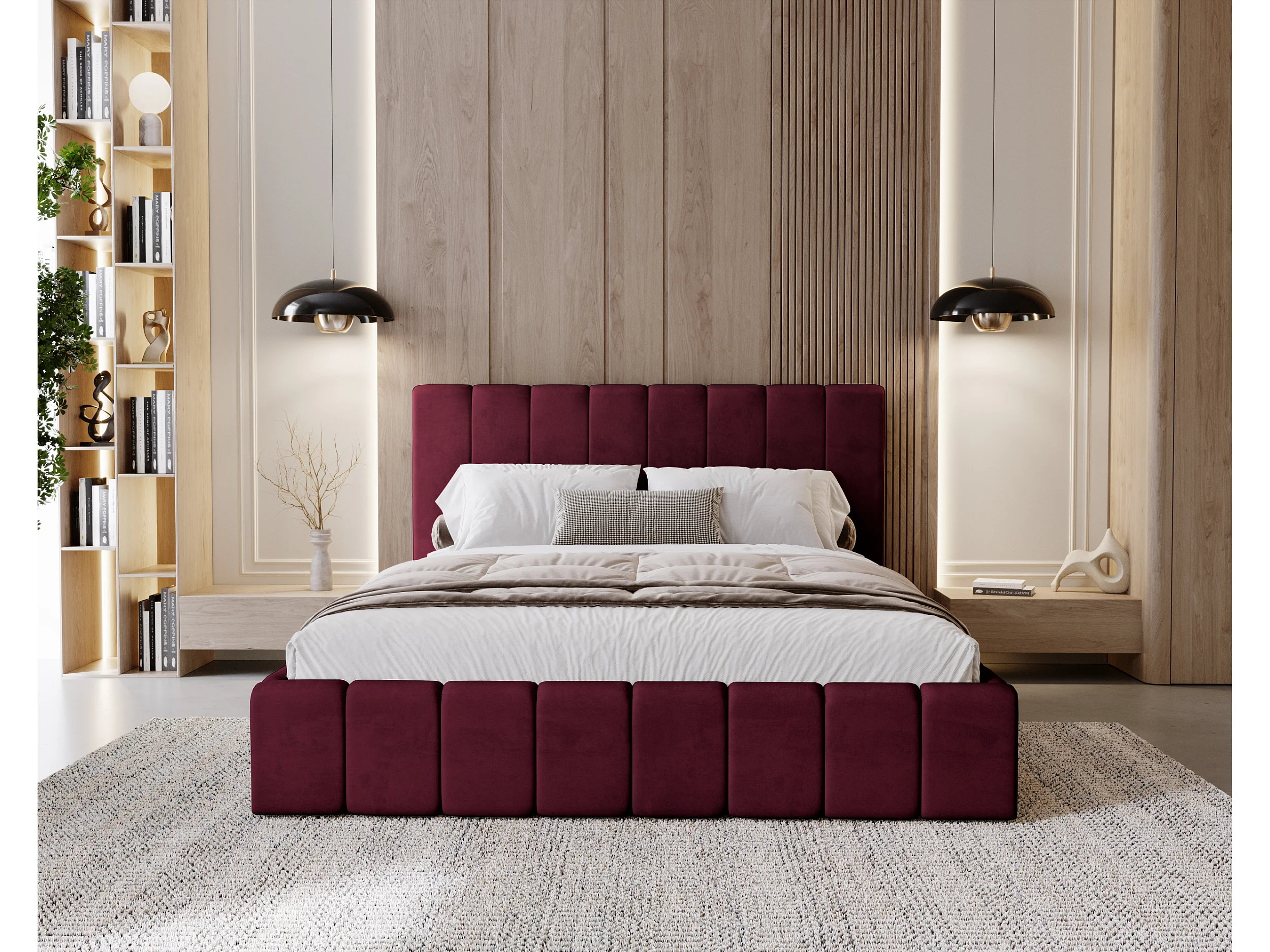 BESILIO Gestoffeerd bed Slim 200x200 Lexy – metalen frame, opbergruimte voor beddengoed, slank bed, fluwelen stof – Bordeauxrood