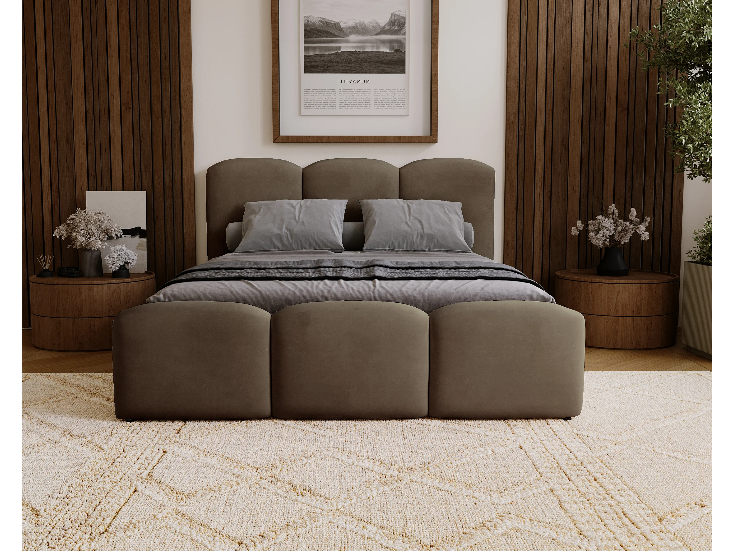 BESILIO Gestoffeerd slaapkamerbed 120x200 Camille – bed met opbergruimte en houten lattenbodem – Bruin