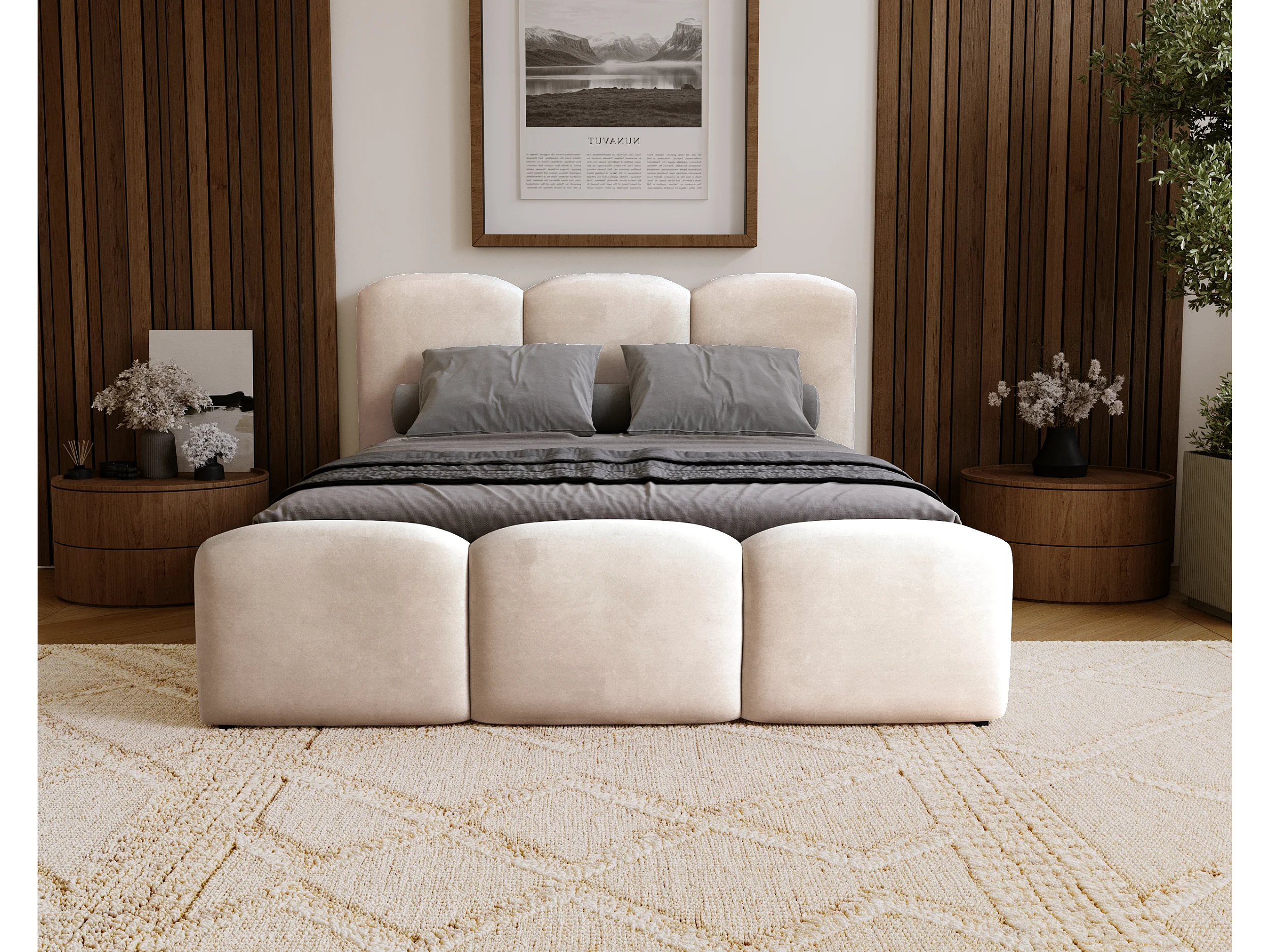 BESILIO Gestoffeerd slaapkamerbed 140x200 Camille – bed met opbergruimte en houten lattenbodem – Beige