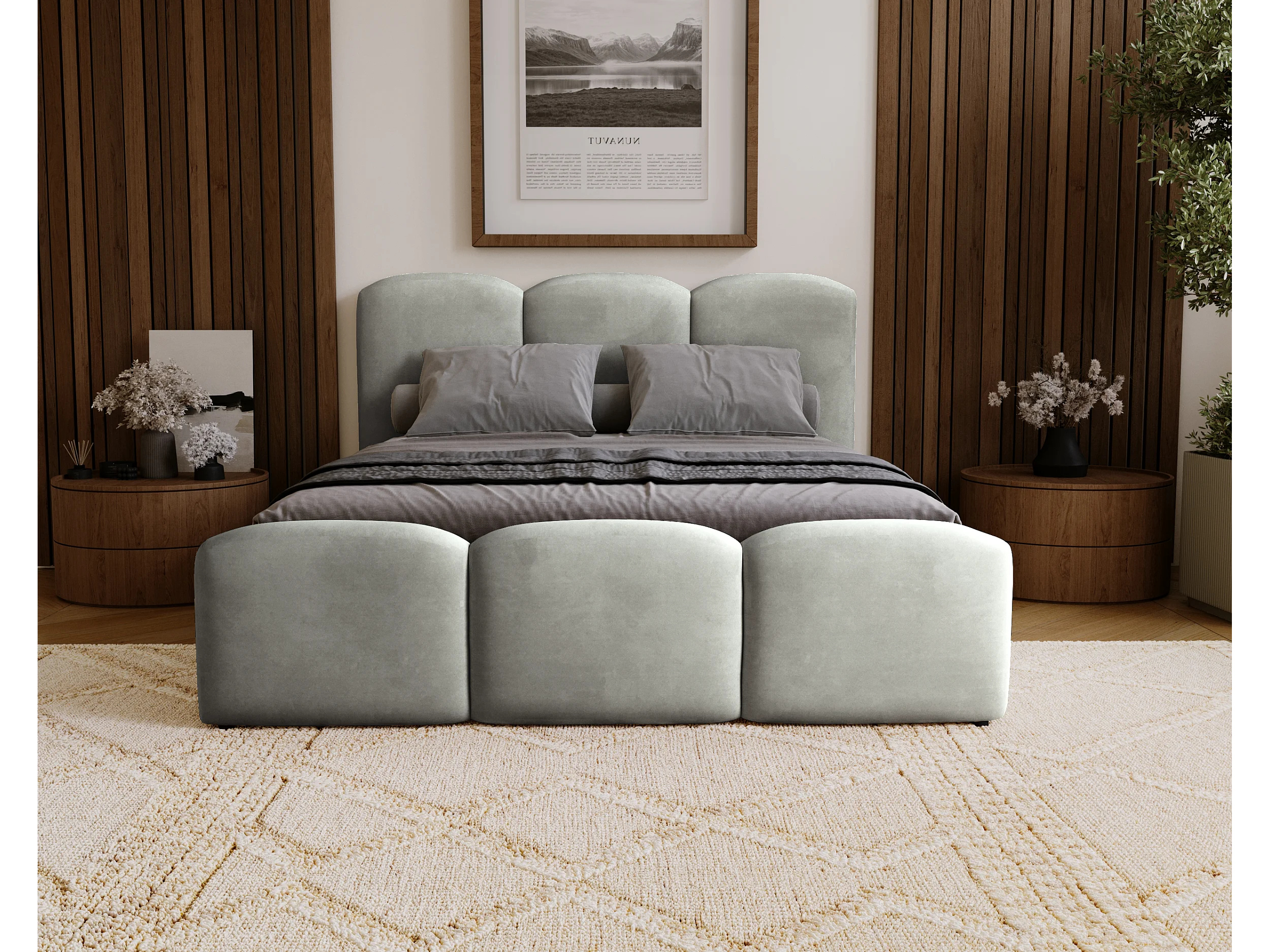 BESILIO Gestoffeerd slaapkamerbed 140x200 Camille – bed met opbergruimte en houten lattenbodem – Grijs