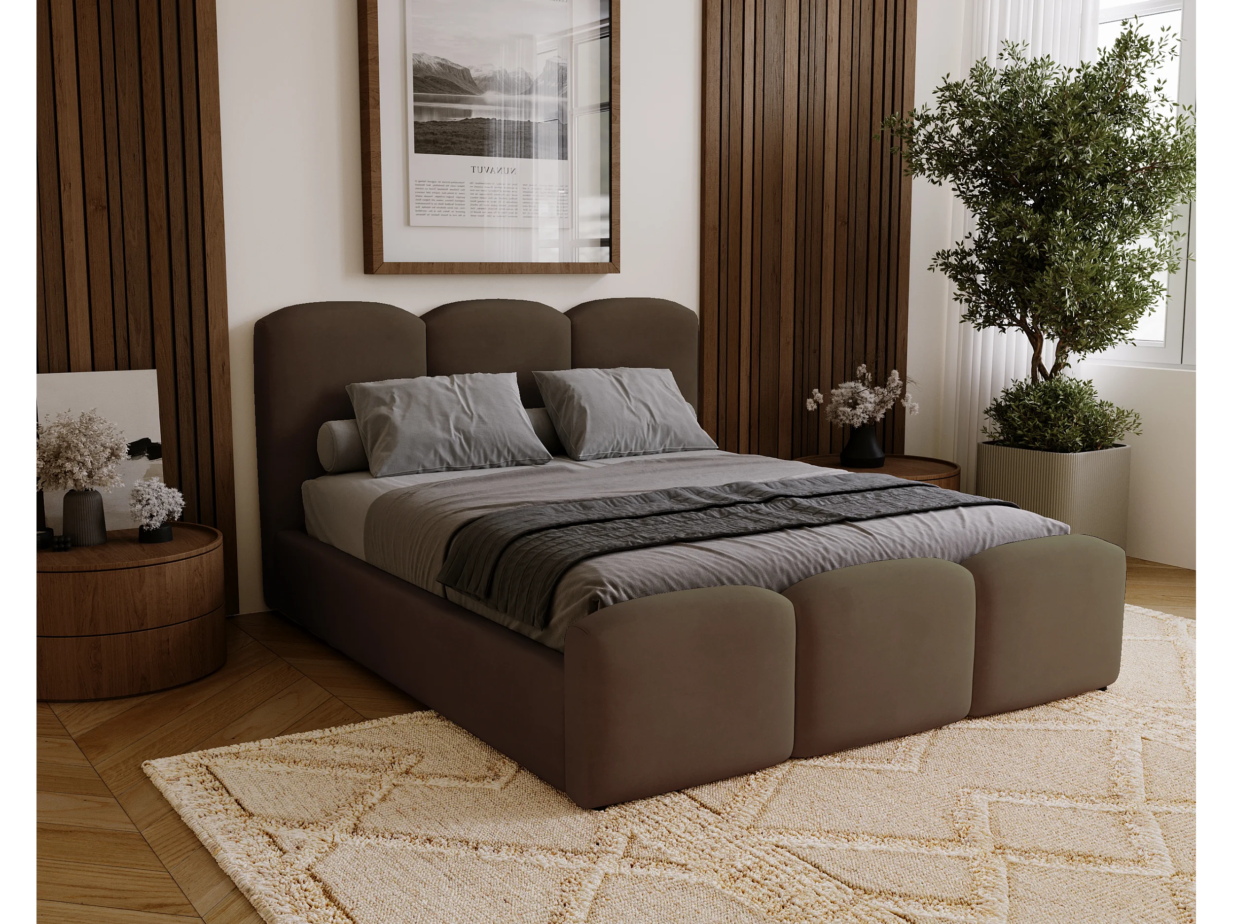 BESILIO Gestoffeerd slaapkamerbed 160x200 Camille – bed met opbergruimte en houten lattenbodem – Bruin