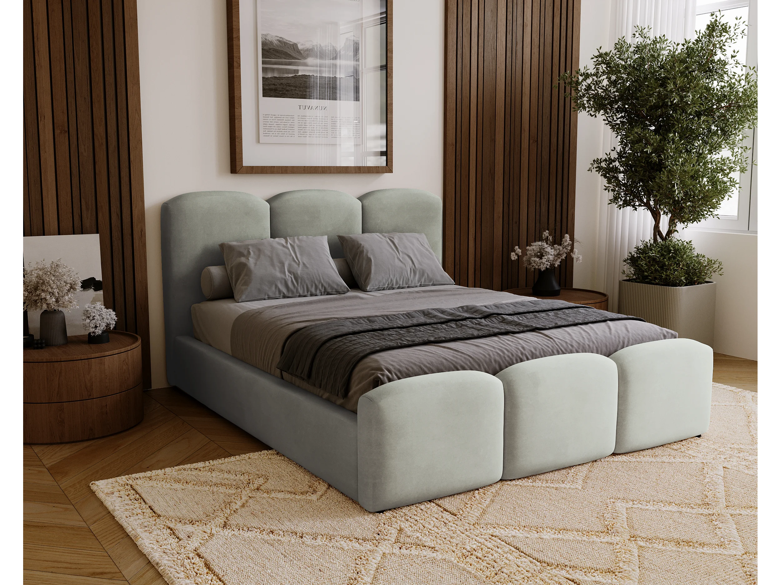 BESILIO Gestoffeerd slaapkamerbed 160x200 Camille – bed met opbergruimte en houten lattenbodem – Grijs