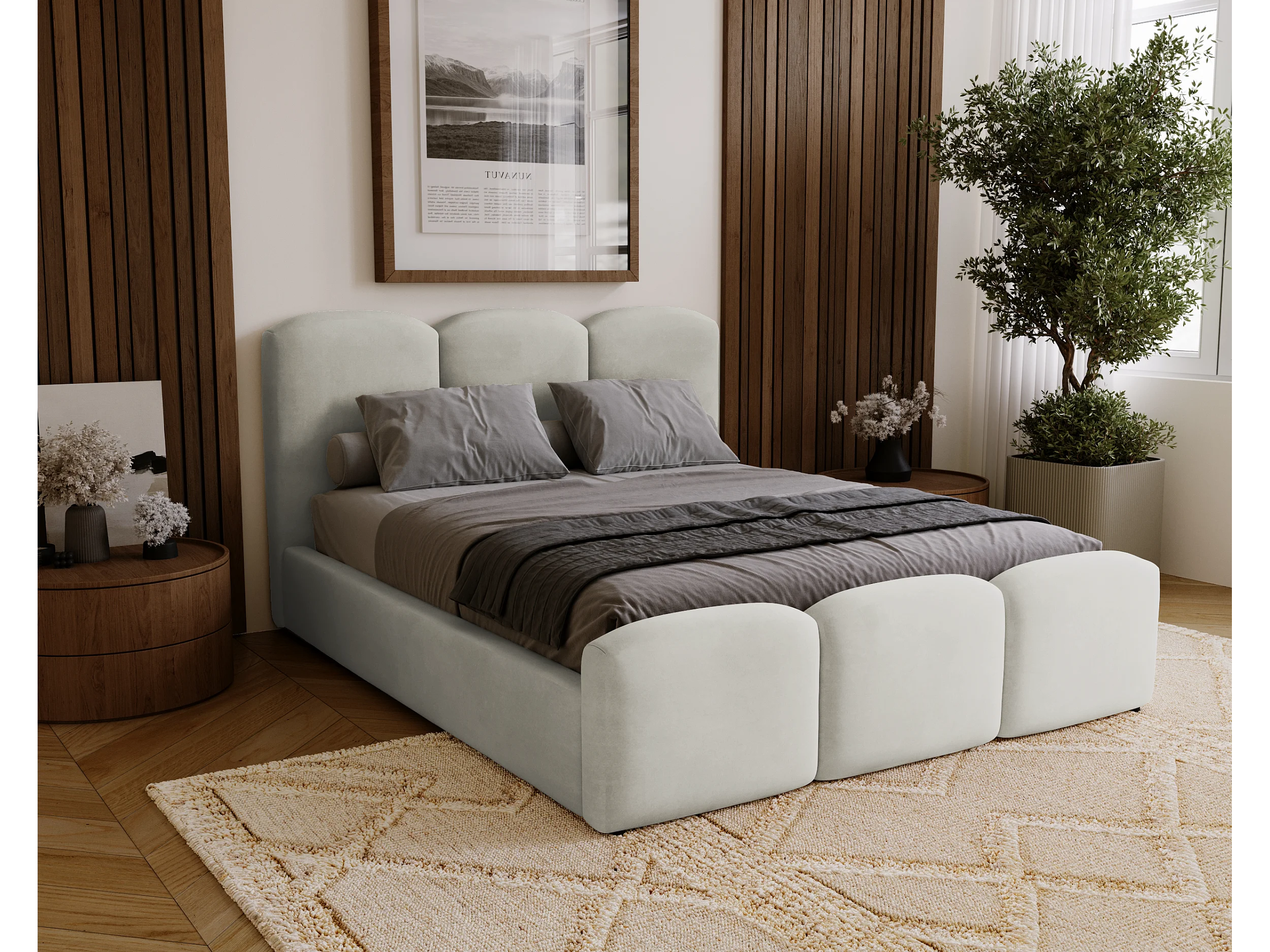 BESILIO Gestoffeerd slaapkamerbed 160x200 Camille – bed met opbergruimte en houten lattenbodem – Lichtgrijs