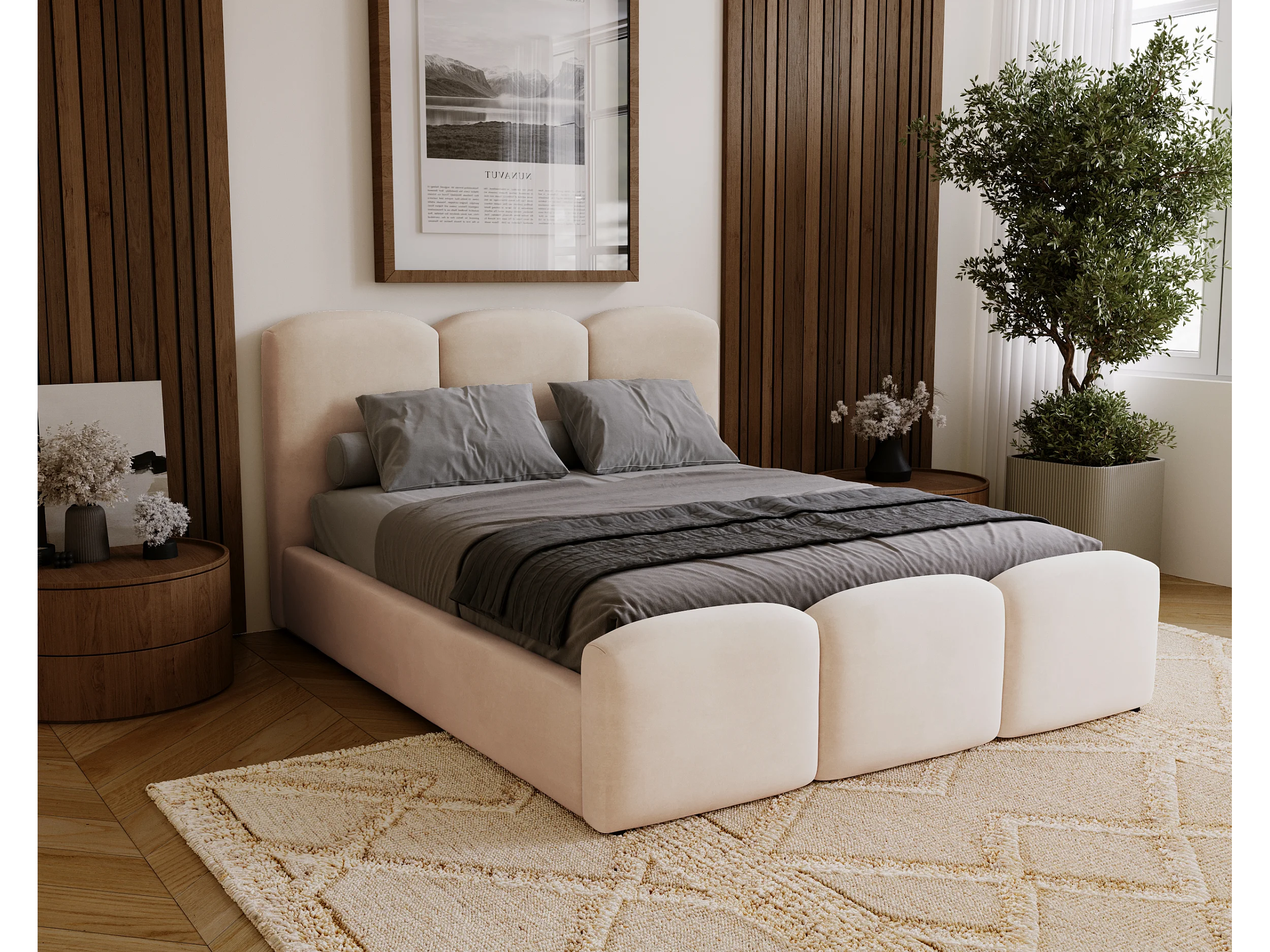 BESILIO Gestoffeerd slaapkamerbed 200x200 Camille – bed met opbergruimte en houten lattenbodem – Beige