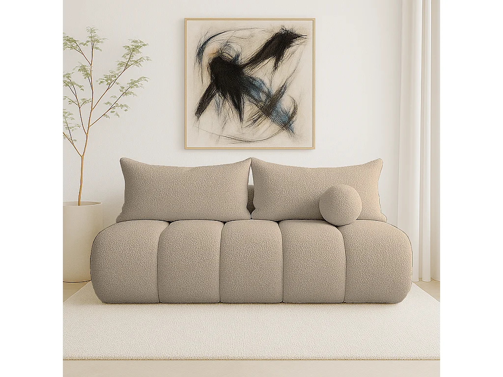 BESILIO Ronde slaapbank Glomi – boucléstof, bank met slaapfunctie – Beige