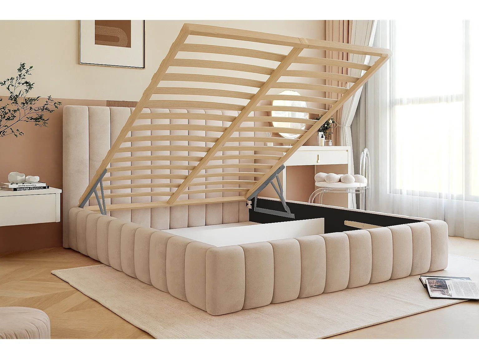 Bed met opbergruimte taupe