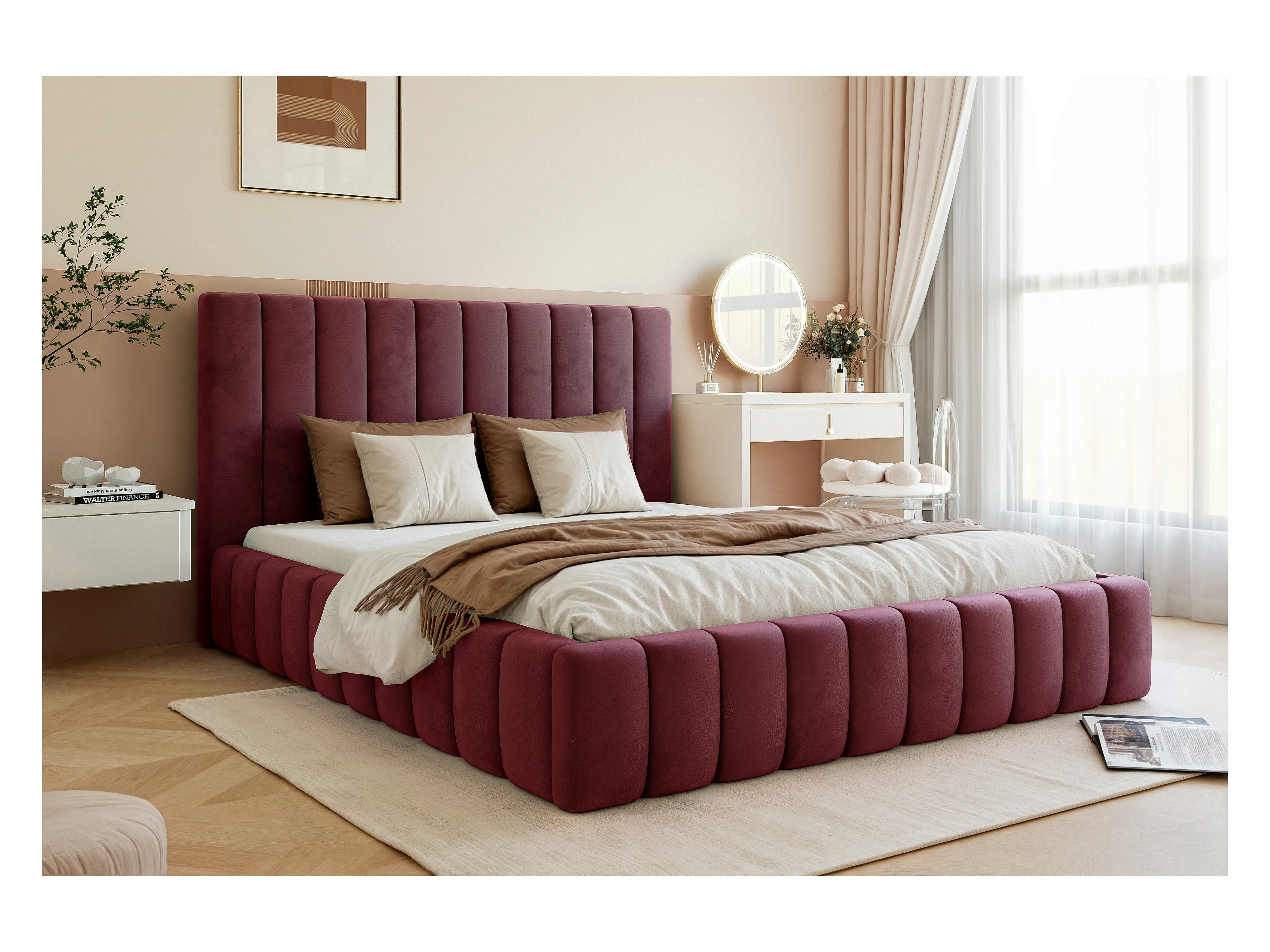 BESILIO Tweepersoonsbed 140x200 Tina – slank slaapkamerbed met lattenbodem en opbergruimte voor beddengoed – fluwelen stof – Bordeauxrood