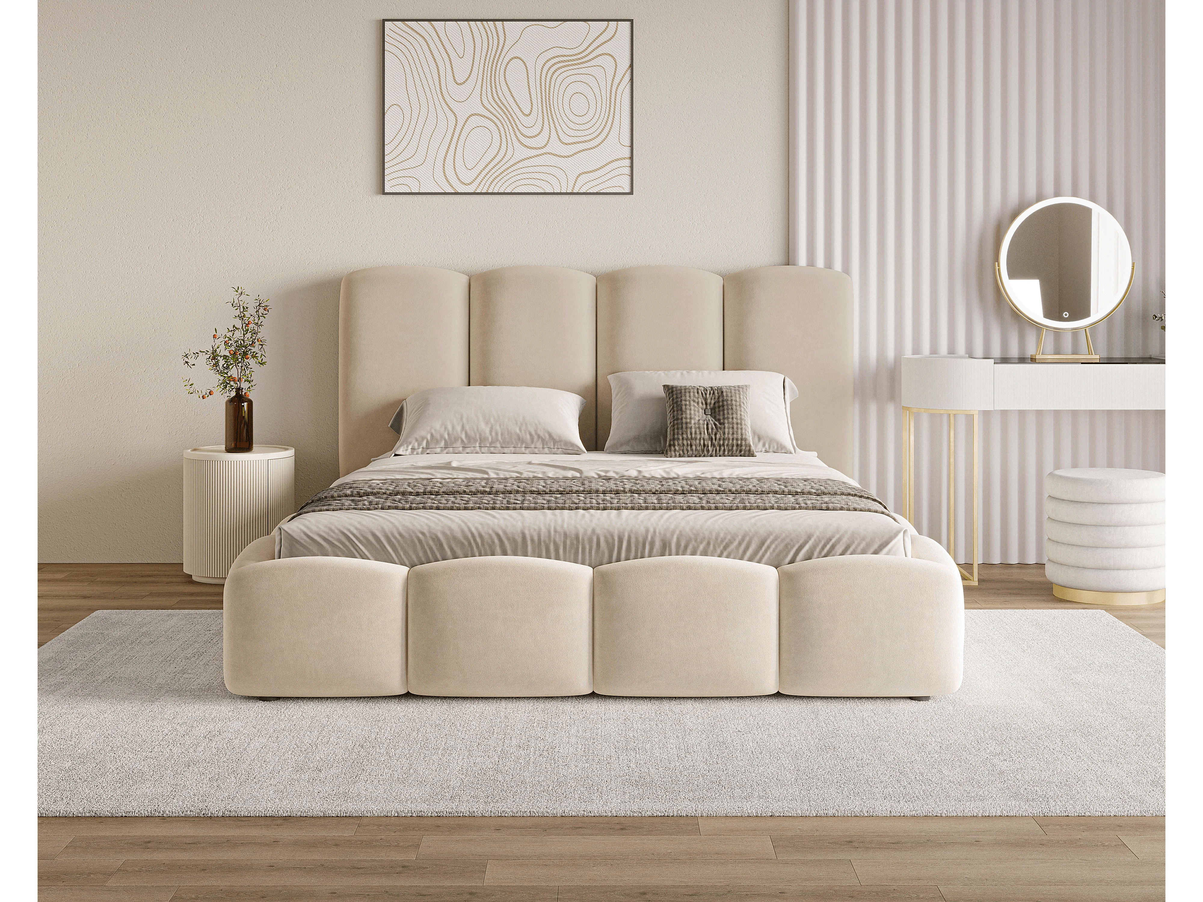 BESILIO Wolkenbed met opbergruimte en lattenbodem 160x200 Puffy – gestoffeerd fluwelen bed – Beige
