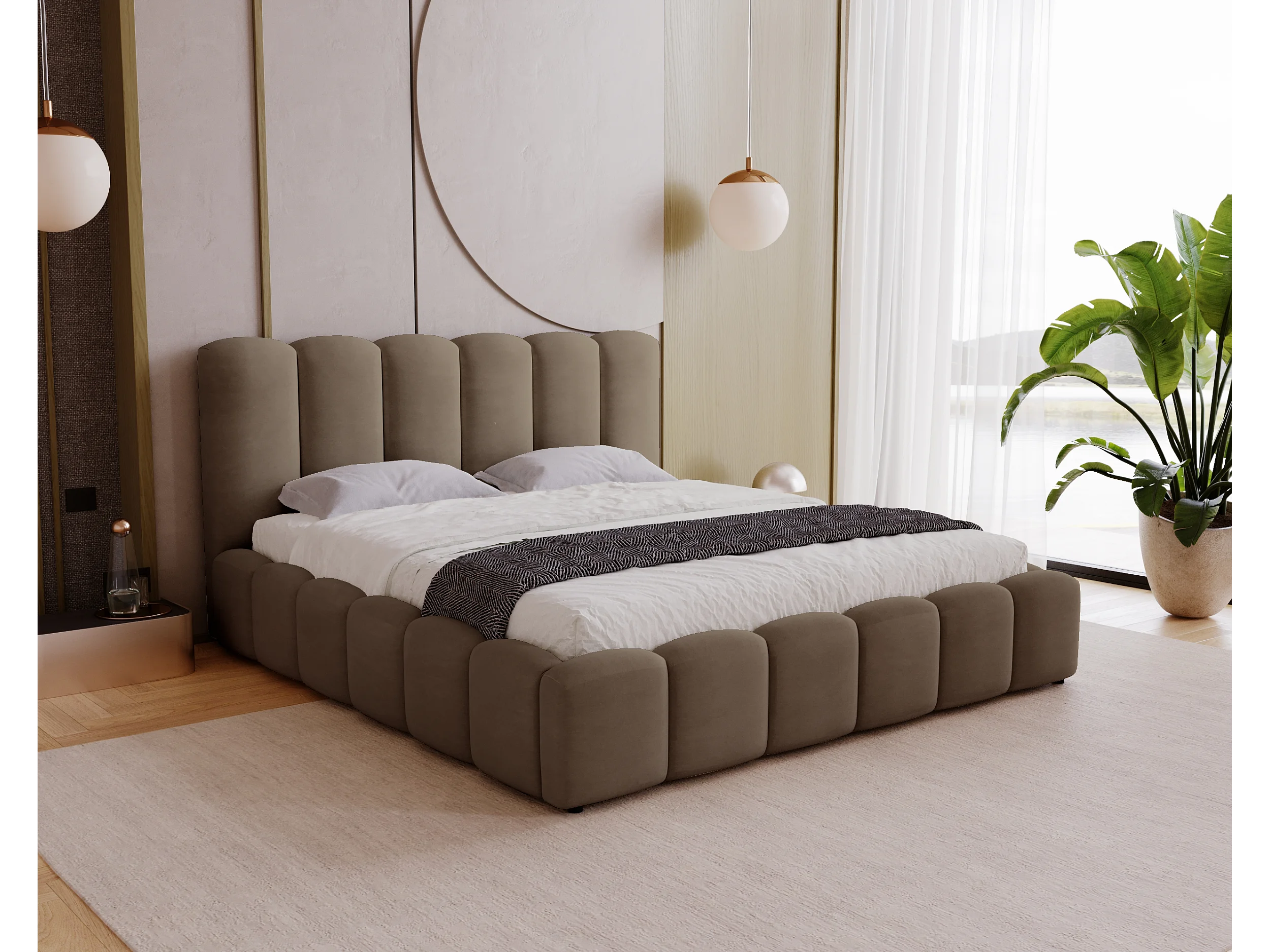 BESILIO Zacht gestoffeerd bed 160x200 Julien – bed met opbergruimte, afgerond design, dichte verticale banen – Bruin