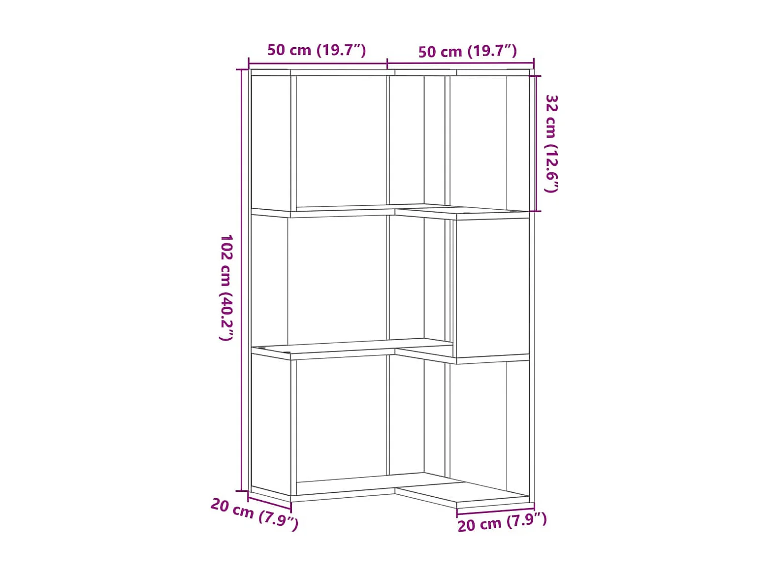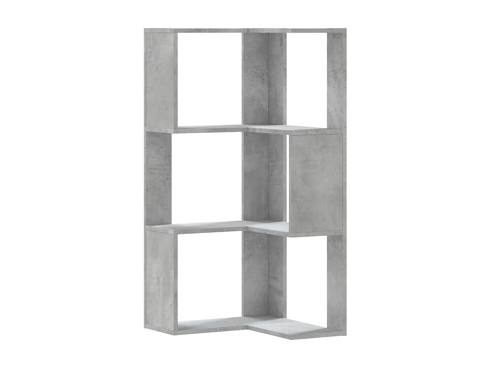 Betongrijze 3-laags hoekboekenkast van bewerkt hout