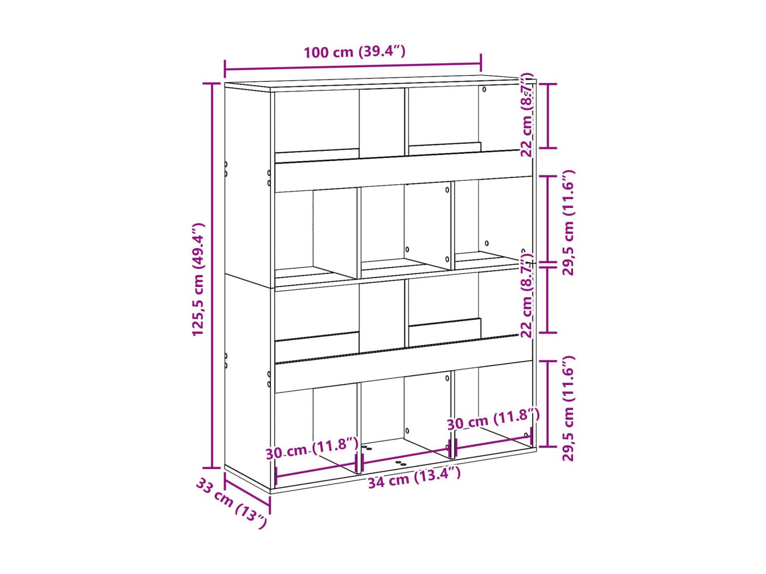 Sonoma grijze boekenkast 100x33x125,5 cm bewerkt hout