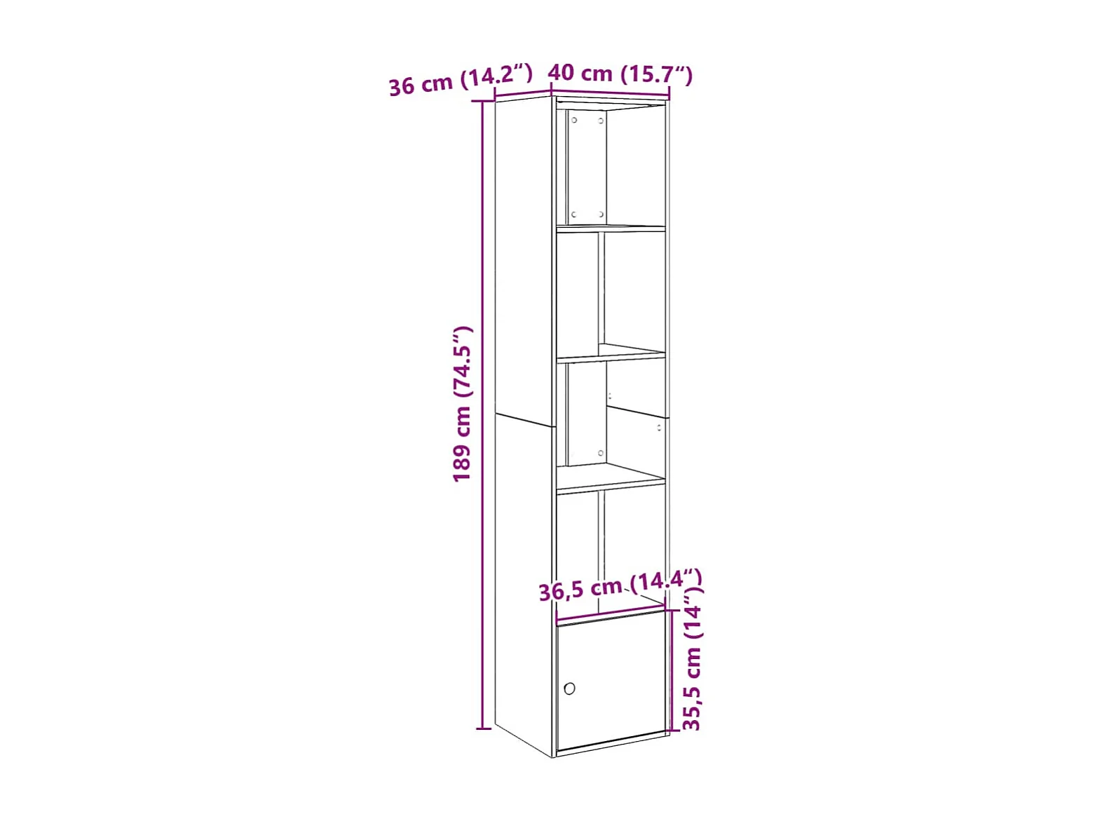 Betongrijze boekenkast 40x36x189 cm bewerkt hout