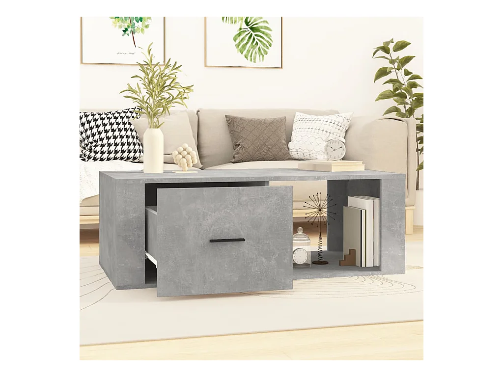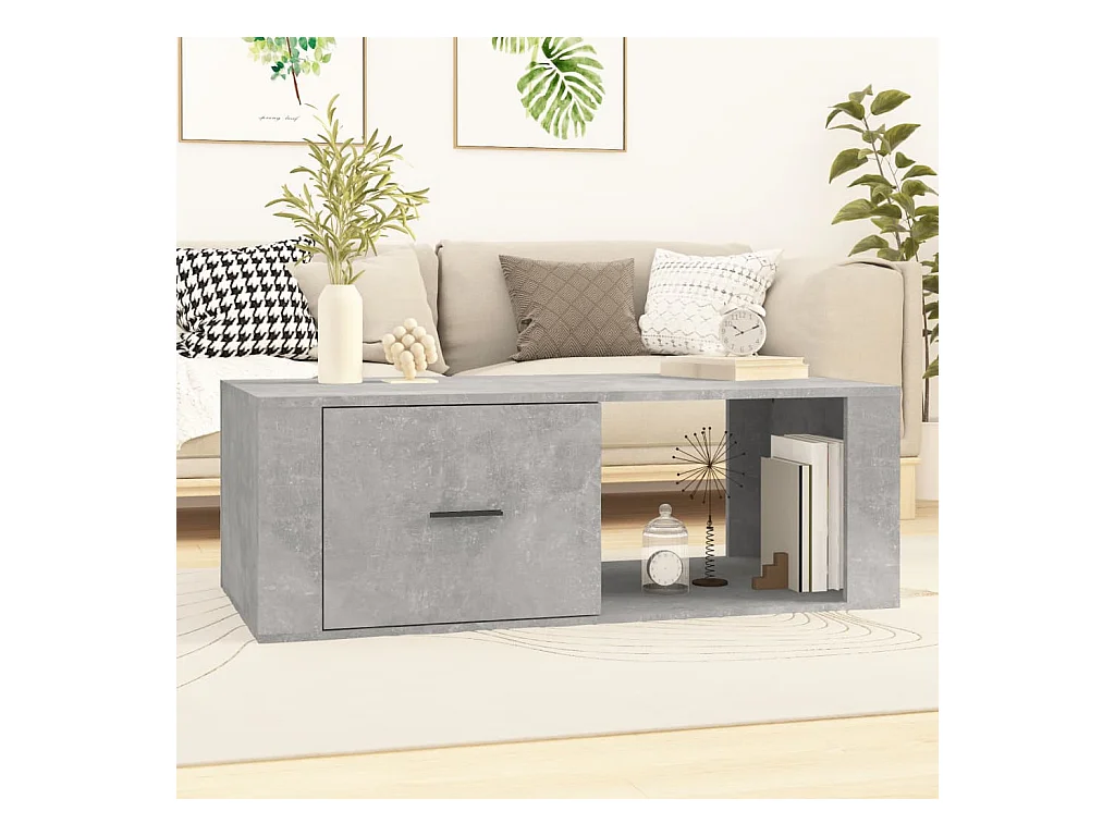 Betongrijze salontafel 100x50,5x35 cm bewerkt hout