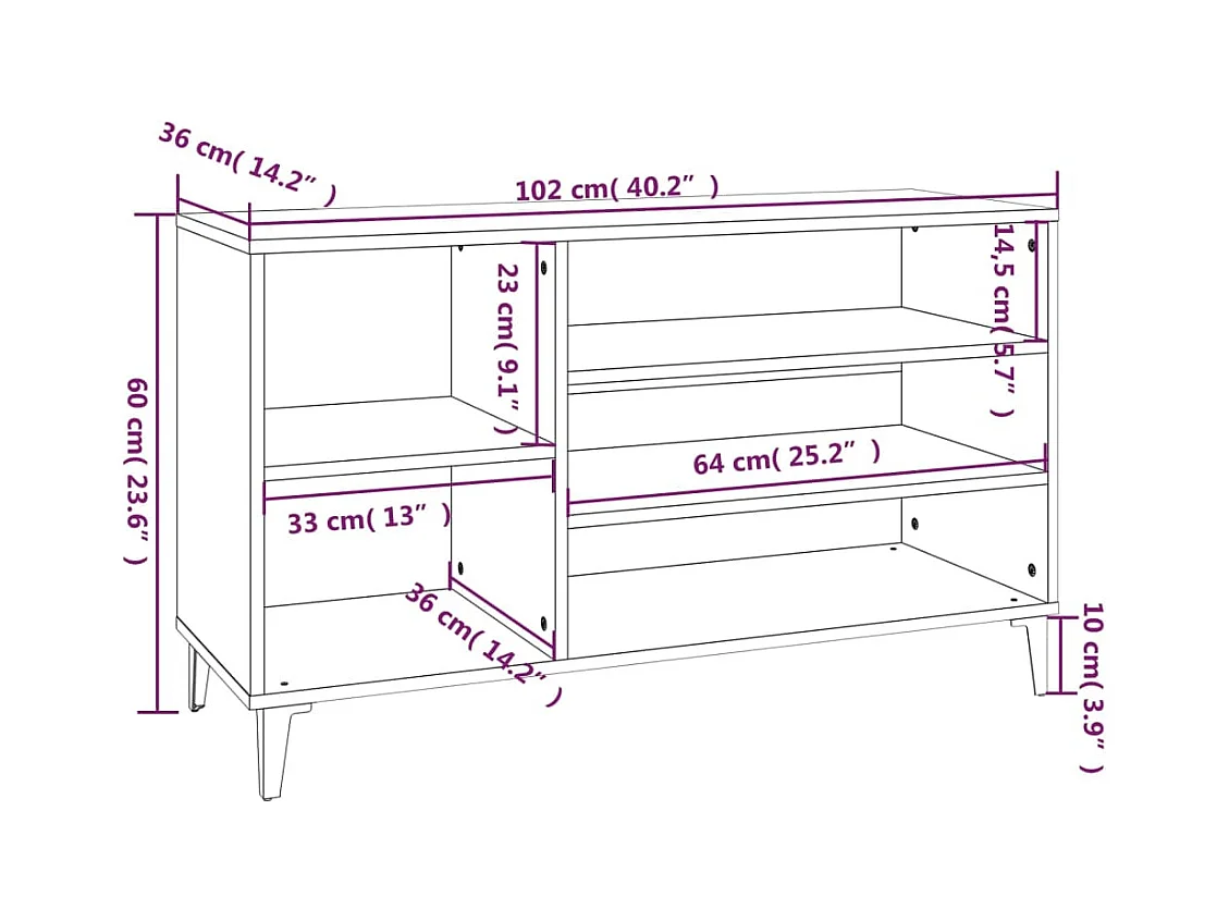 Sonoma grijze schoenenkast 102x36x60 cm Technisch hout