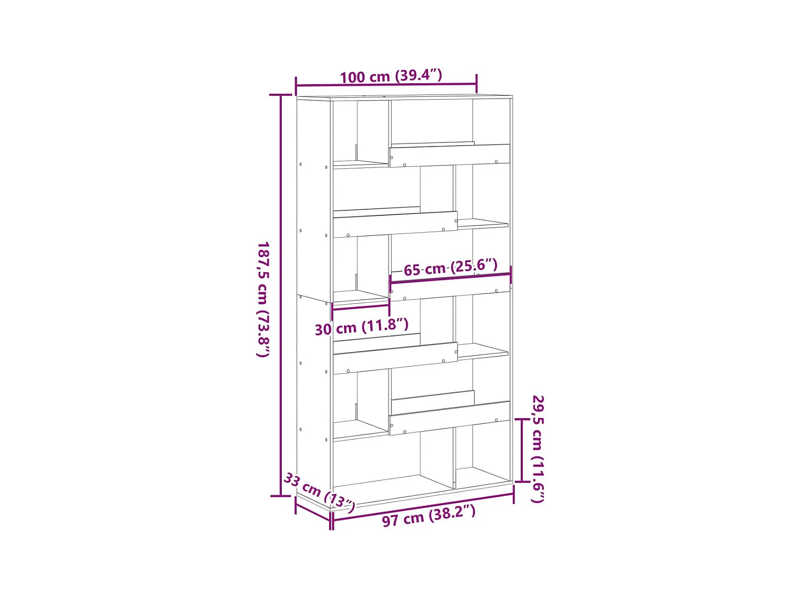 Sonoma grijze boekenkast 100x33x187,5 cm bewerkt hout