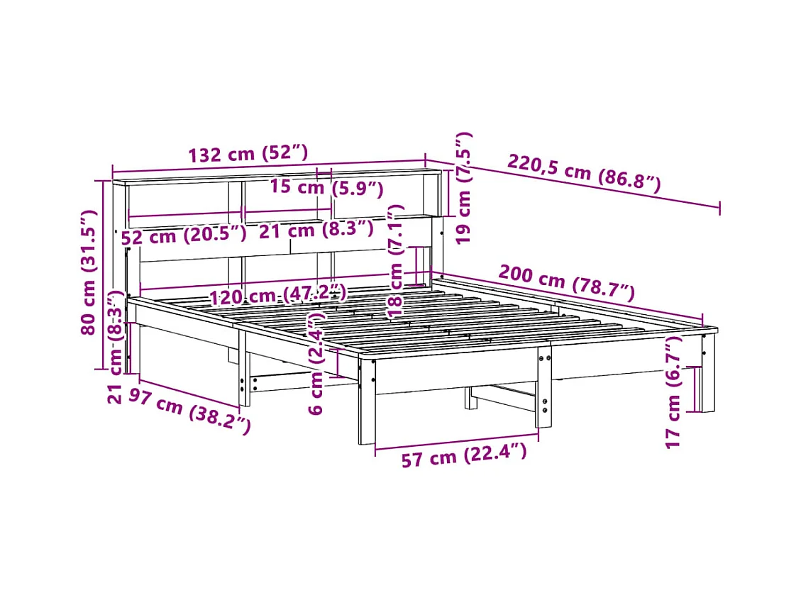 Bibliotheekbed zonder matras 120x200 cm massief grenenhout