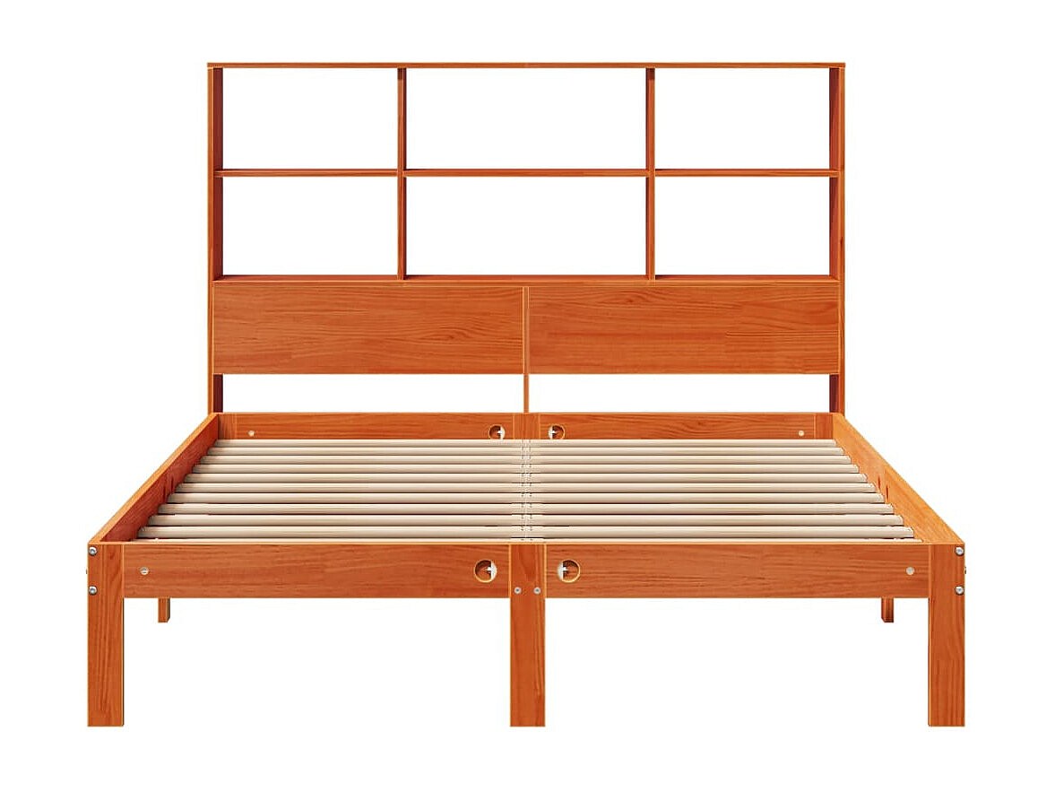 Bibliotheekbed zonder matras bruin gewaxt 140x190 cm massief grenen