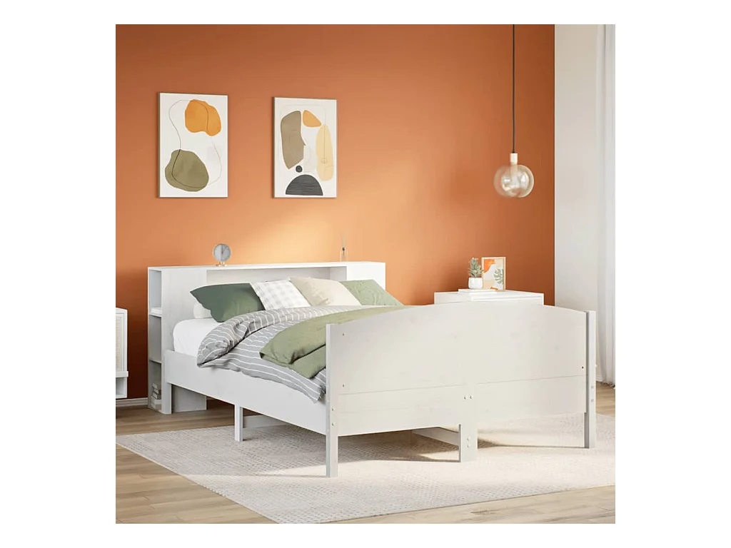 Bibliotheekbed zonder matras wit 120x190 cm massief grenenhout