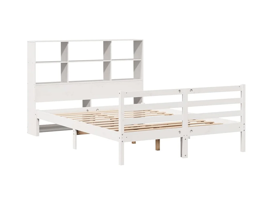Bibliotheekbed zonder matras wit 140x190 cm massief grenenhout