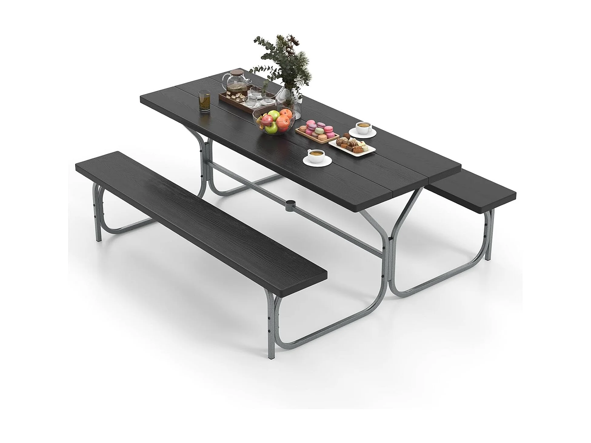 Biertentgarnituur, 183 cm, biertafelset met weerbestendig HDPE-tafelblad en parasolgat, biertafel met 2 banken, zitgarnituur voor 6-8 personen voor tuin ZB33488