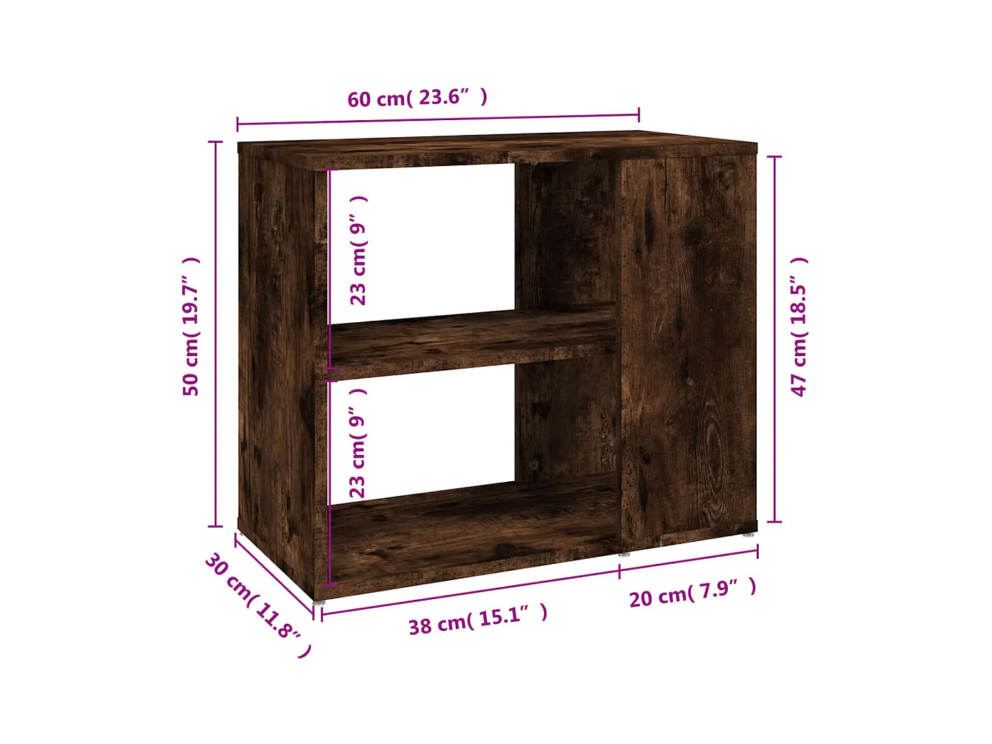 Bijzetkast 60x30x50 cm bewerkt hout gerookt eikenkleurig