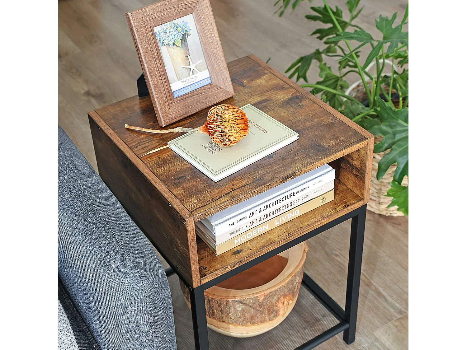 Bijzettafel 40x40x58 cm bruin zwart Indestic