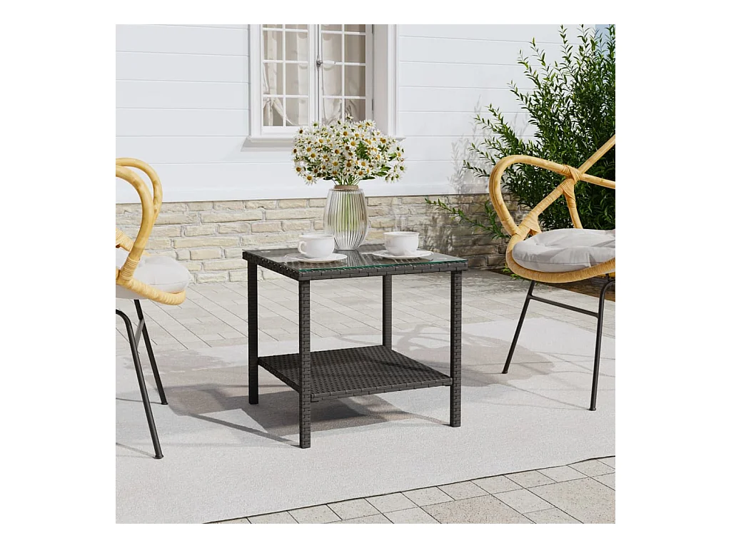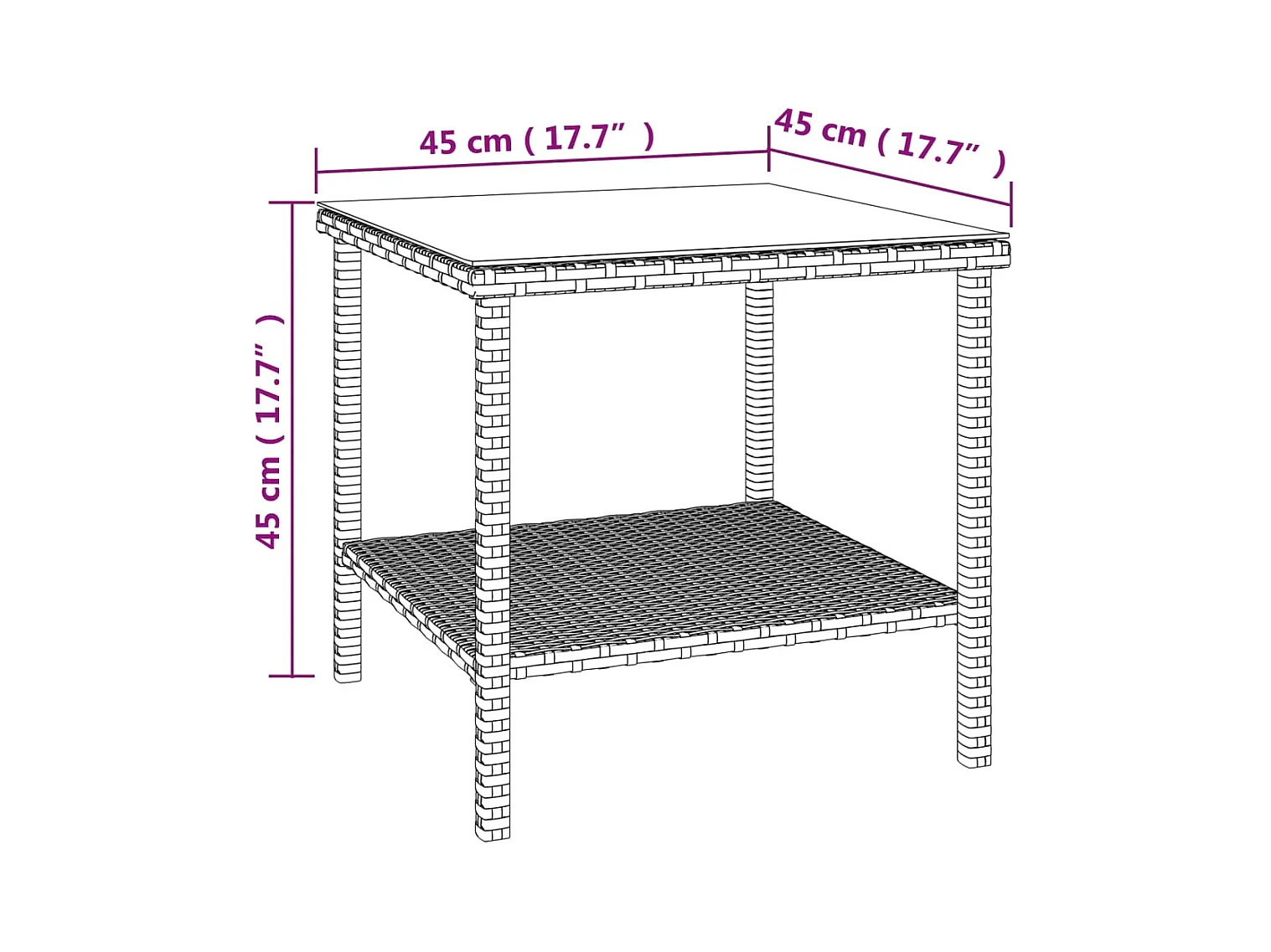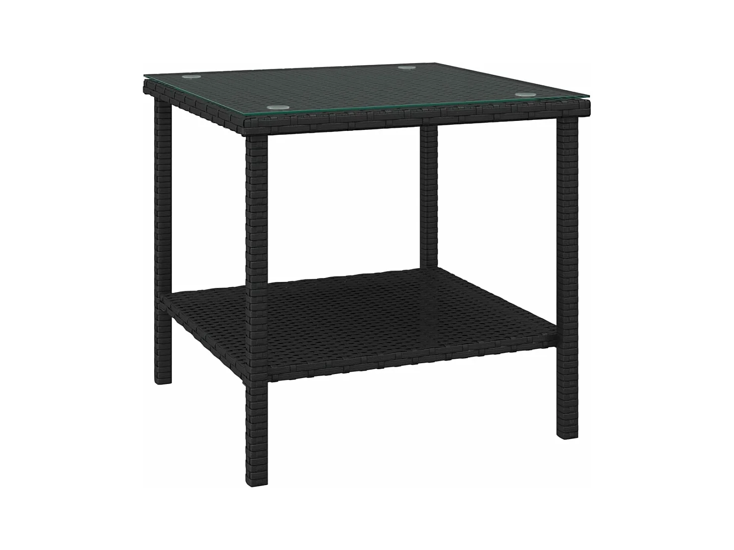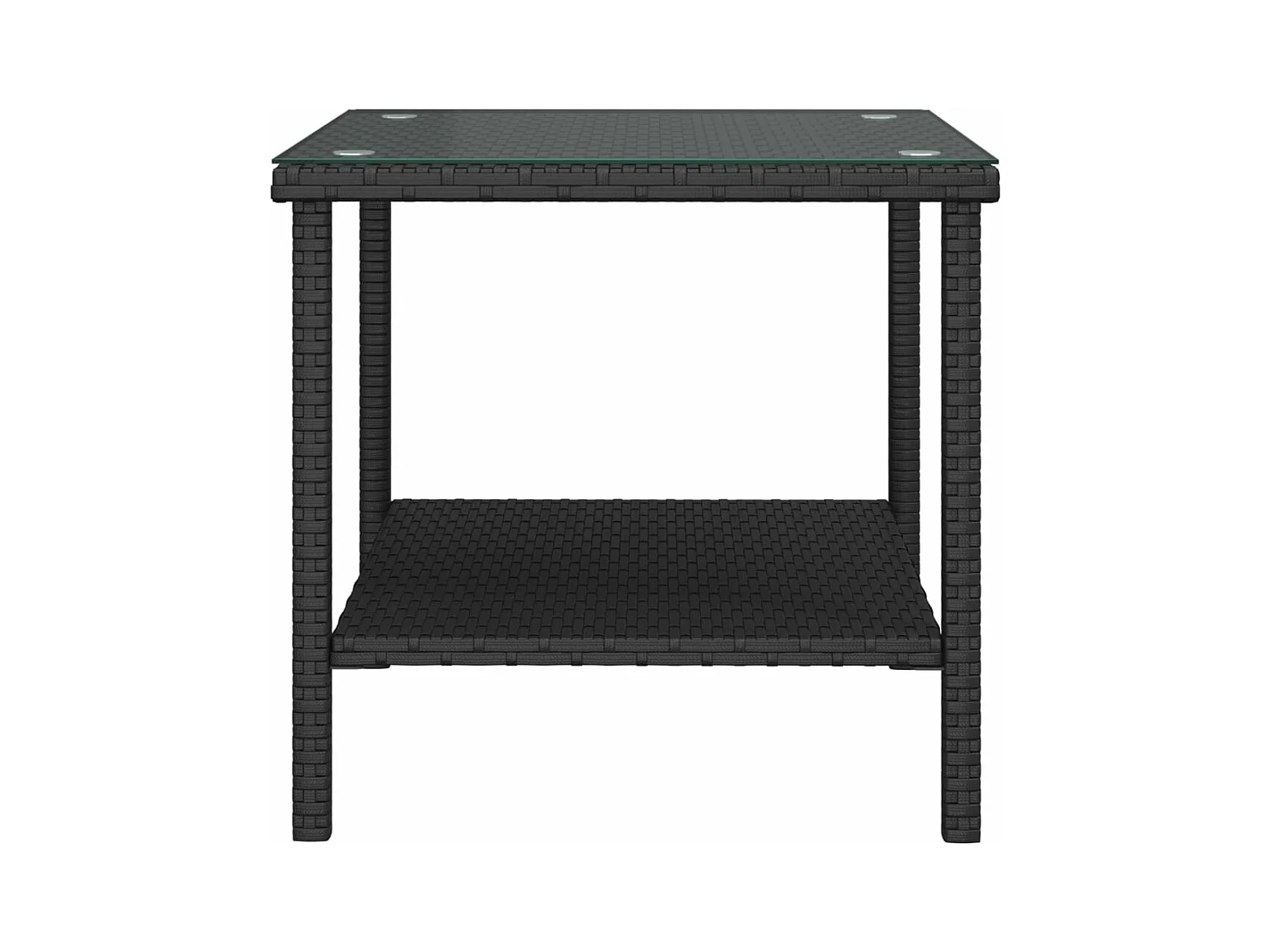 Bijzettafel 45x45x45 cm poly rattan en gehard glas zwart