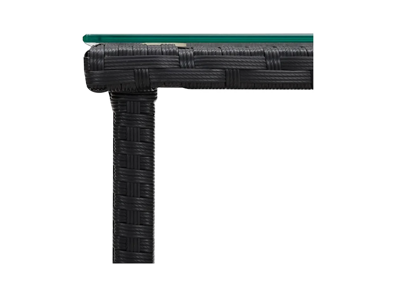 Tuintafel met glazen blad 100x55x73 cm poly rattan zwart