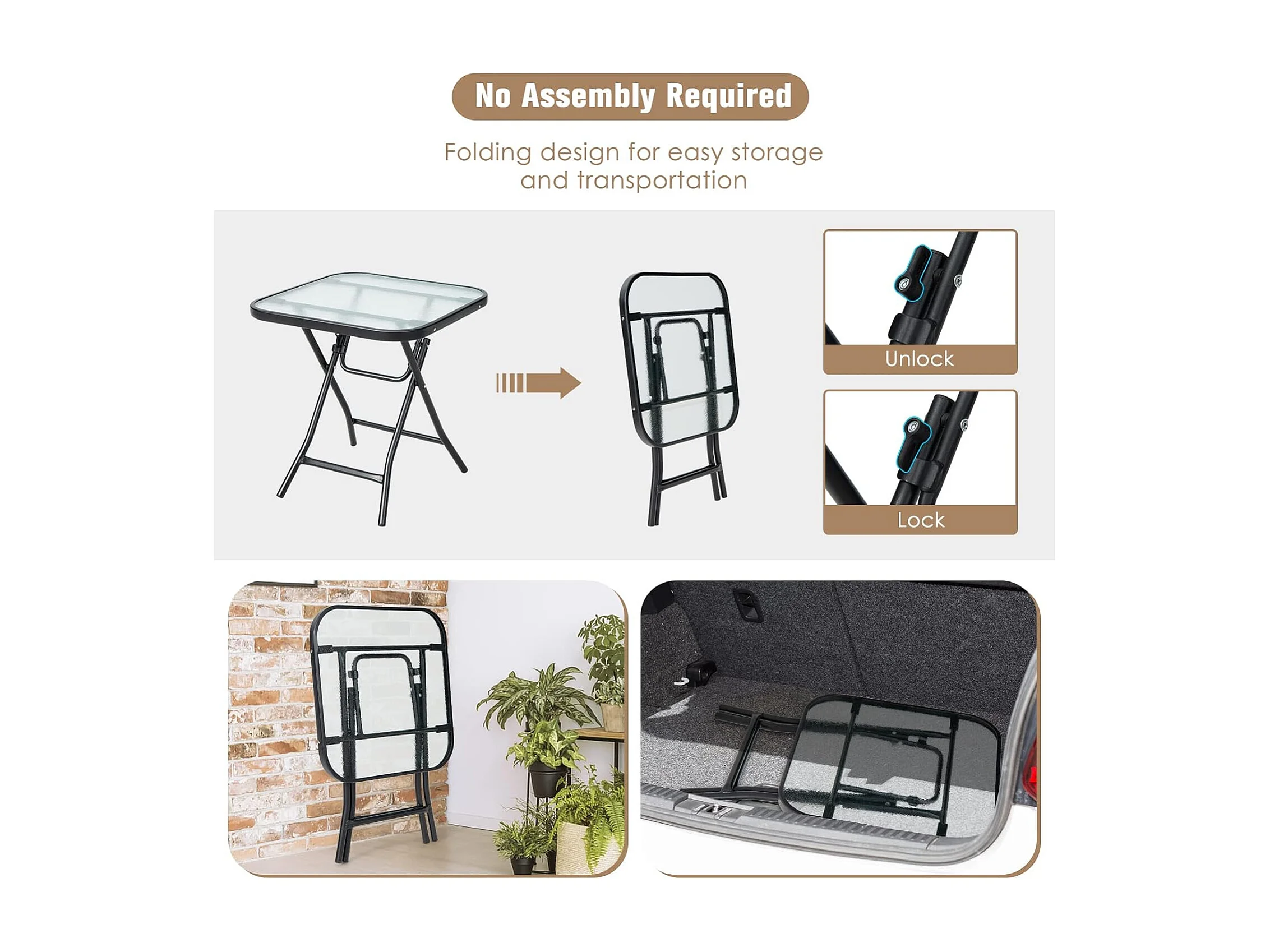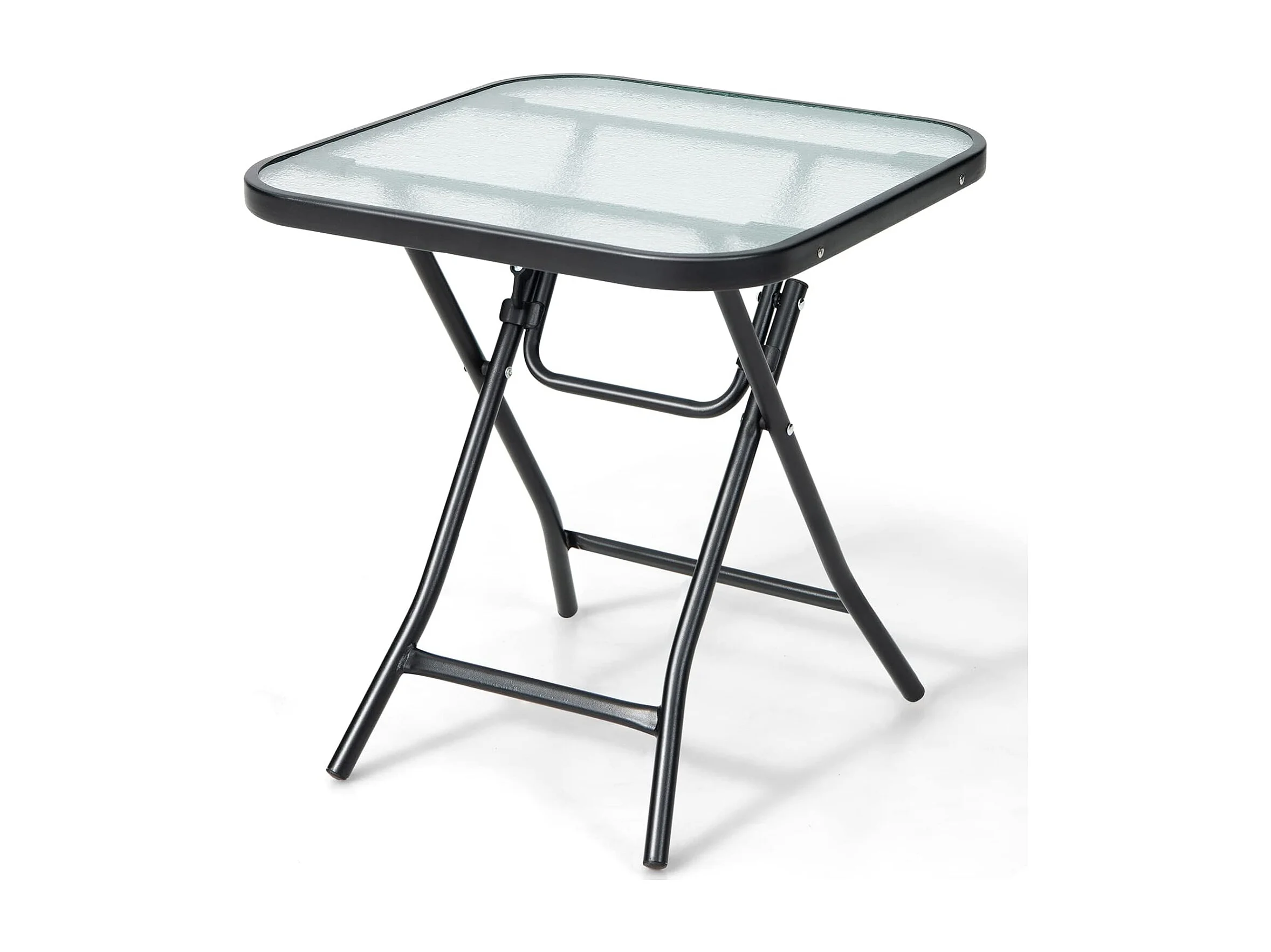 Bijzettafel inklapbaar, kleine klaptafel, weerbestendige tuintafel, vierkante balkontafel met tafelblad van gehard glas voor balkon, tuin, terras, 46,5x46,5x42 cm